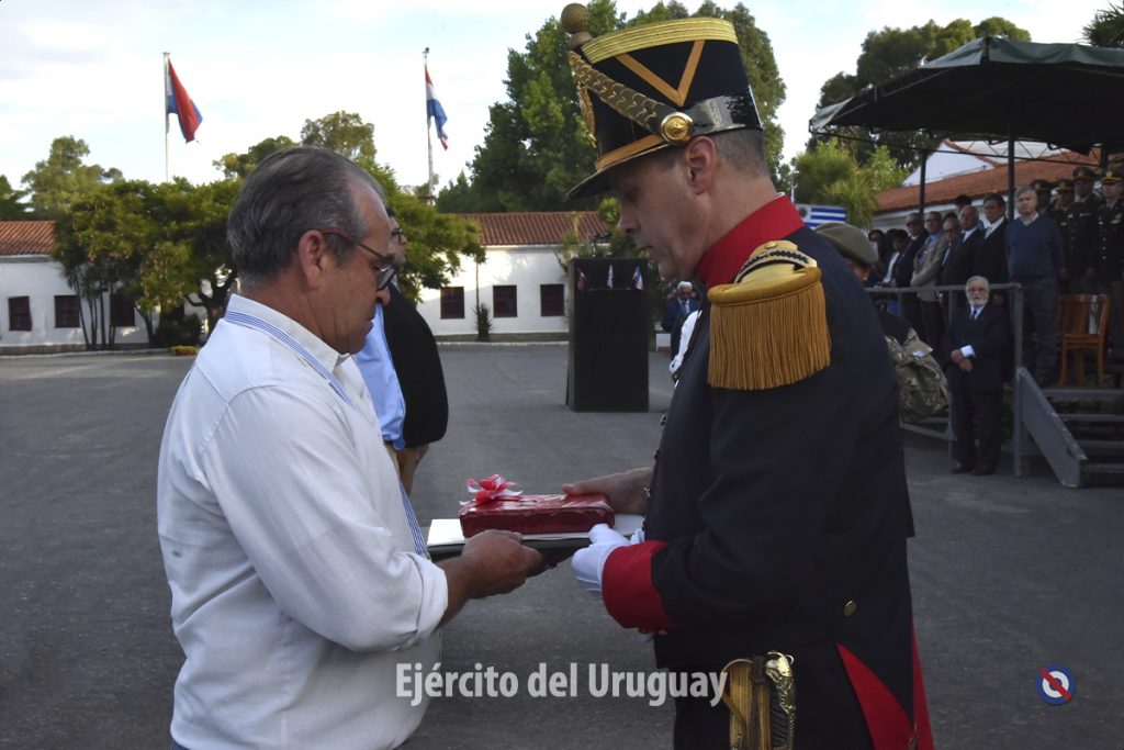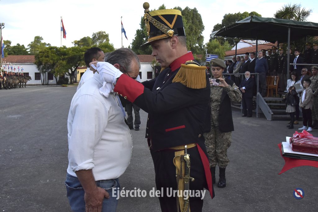 En su discurso, el Jefe del Regimiento hizo mención del personal que pasó a su nueva situación de revista. «Sgto. Fernando Rodríguez, excelente jinete, nos representó tanto en marchas y desfiles a caballo como en competencias ecuestres. Cabo 1ª Walter Larrosa, treinta años haciendo sonar los timbales de nuestra Charanga. Sdo. 1ª Ángel Guerra, leal y dedicado en el mantenimiento de los equinos. Sdo. 1ª José Sosa, su recuerdo quedará plasmado en los murales que adornan nuestro Cuartel pintados por sus manos».