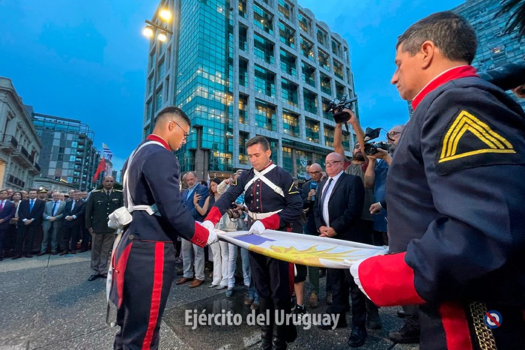 En la tarde del viernes 28 de febrero, con la presencia del Presidente de la República, Dr. Luis Lacalle Pou, se realizó la ceremonia de arriado del Pabellón Nacional en la Plaza Independencia.
