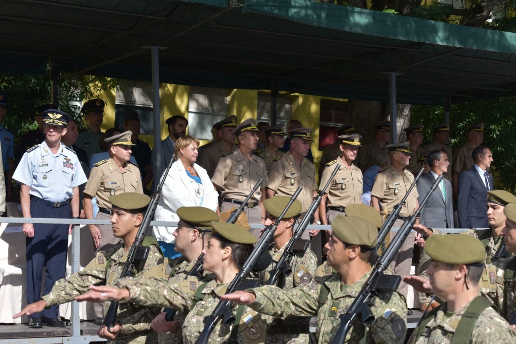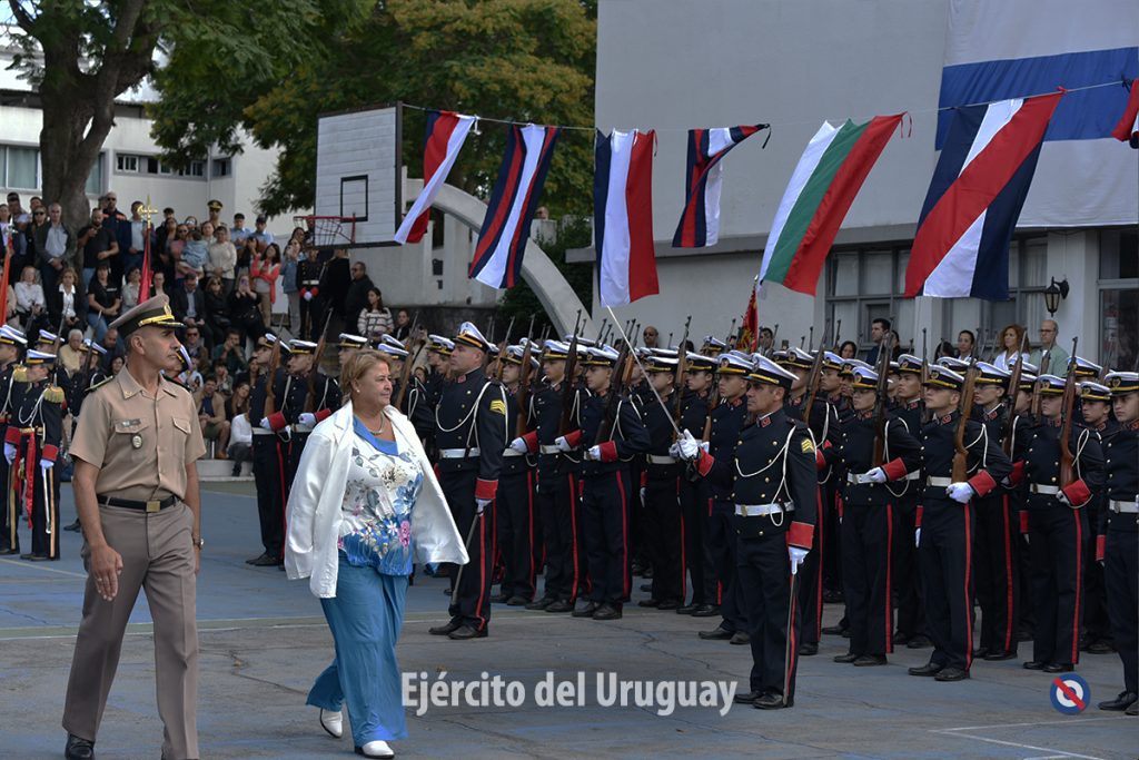 En primera instancia, la Ministra de Defensa Nacional, Sandra Lazo acompañada del Director del Instituto, Cnel. Daniel Ubal, pasaron revista de los efectivos formados.