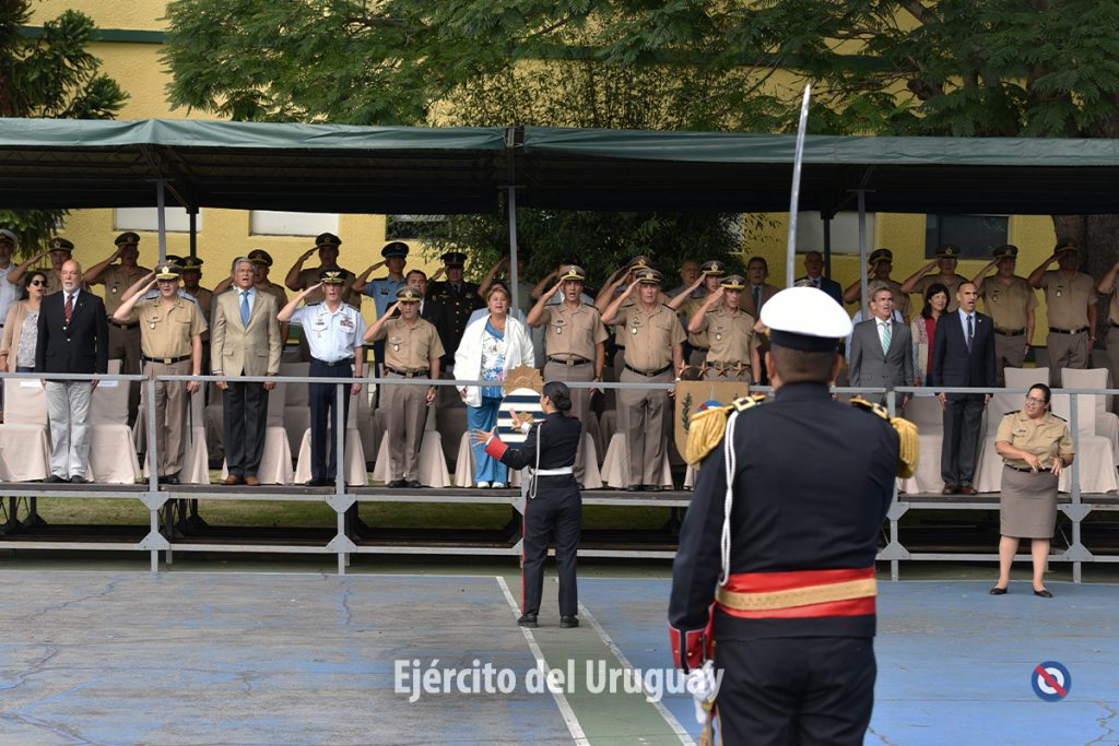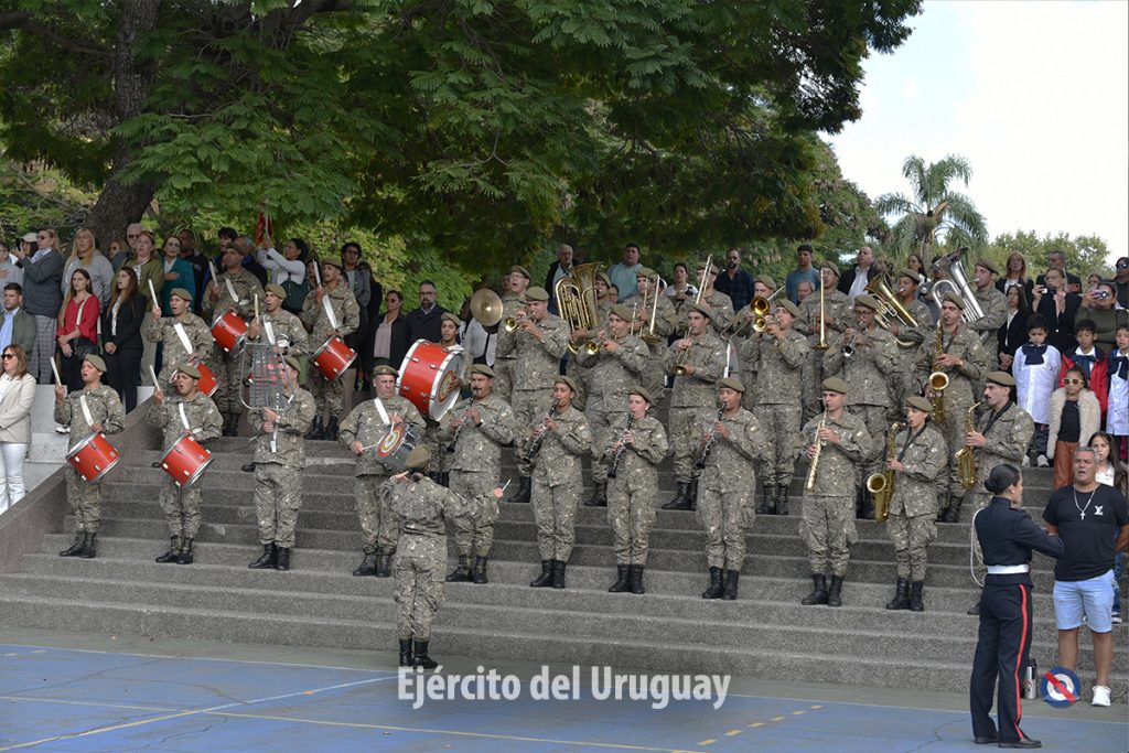 La Banda de Músicos del Instituto Militar de las Armas y Especialidades ejecutó el Himno Nacional, invitando a los presentes a entonar sus estrofas. Alumnos de la sede de Montevideo y Anexo Norte de Tacuarembó, hicieron la interpretación en lenguaje de señas.