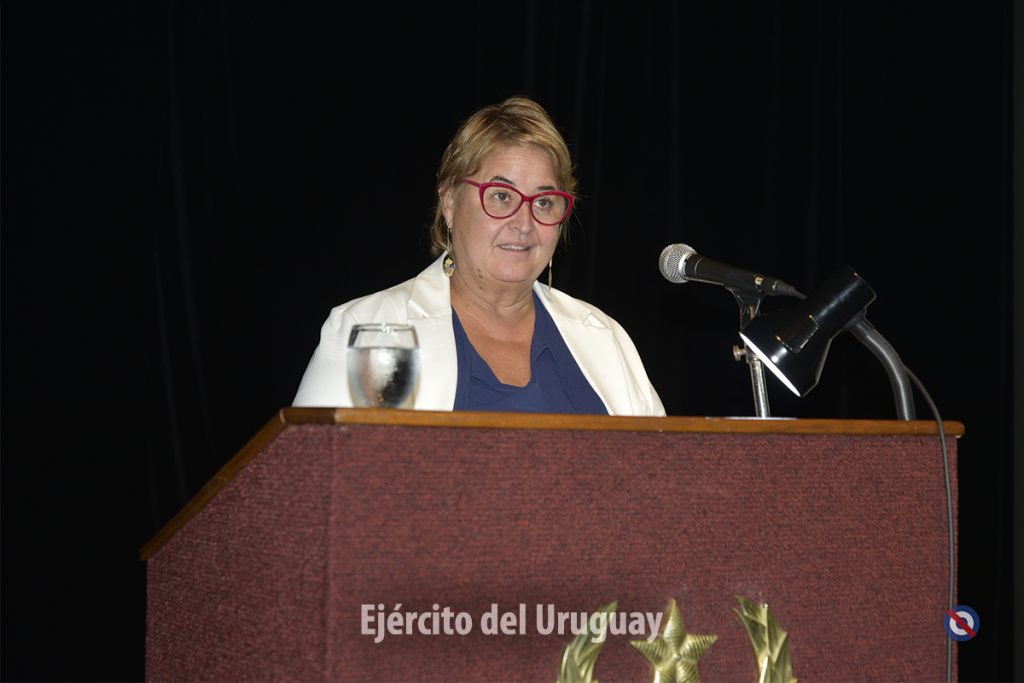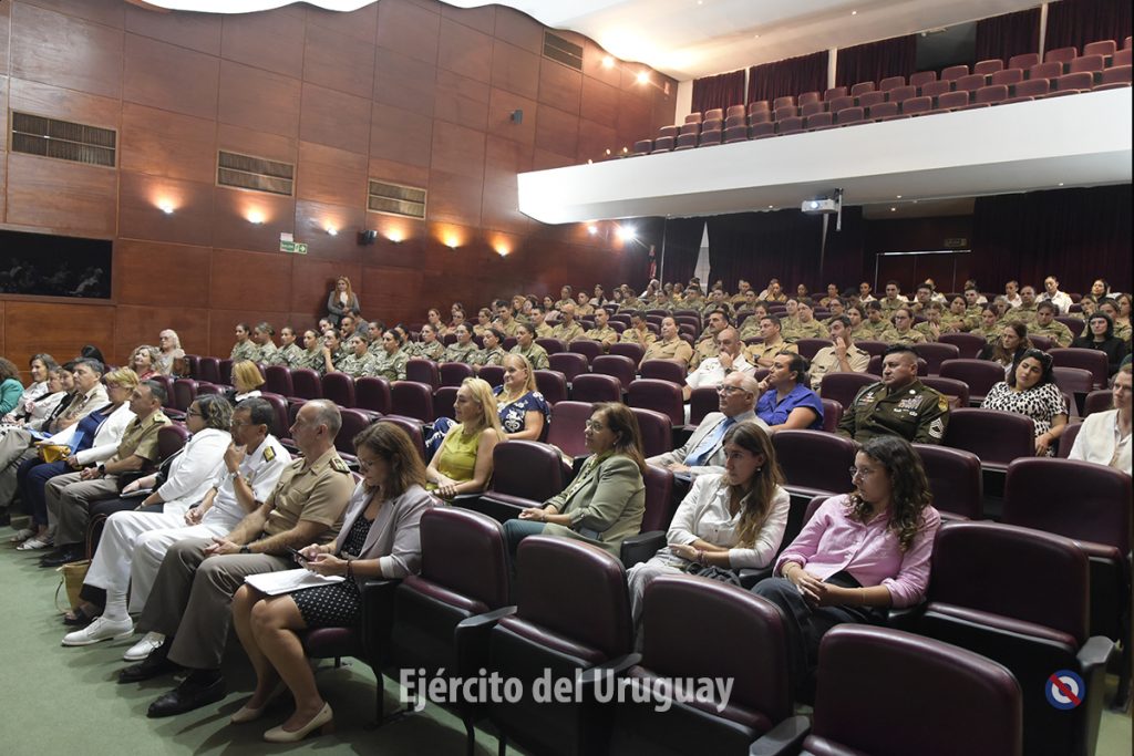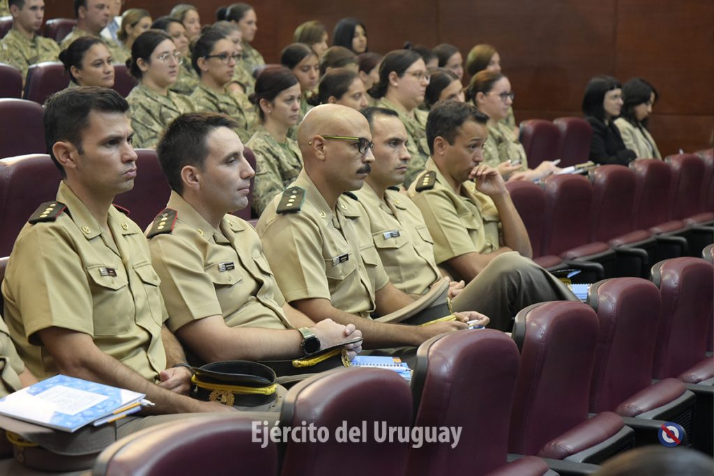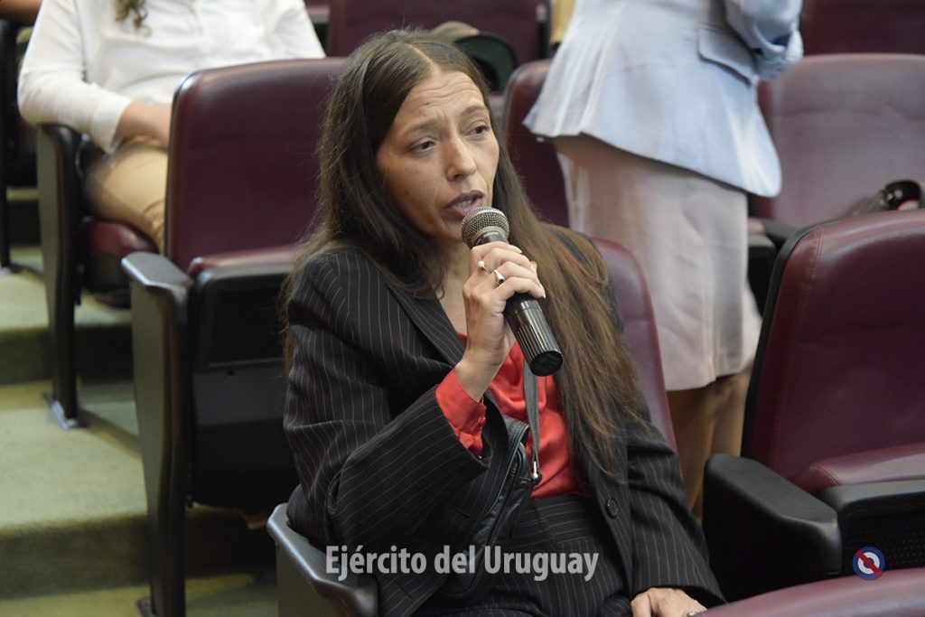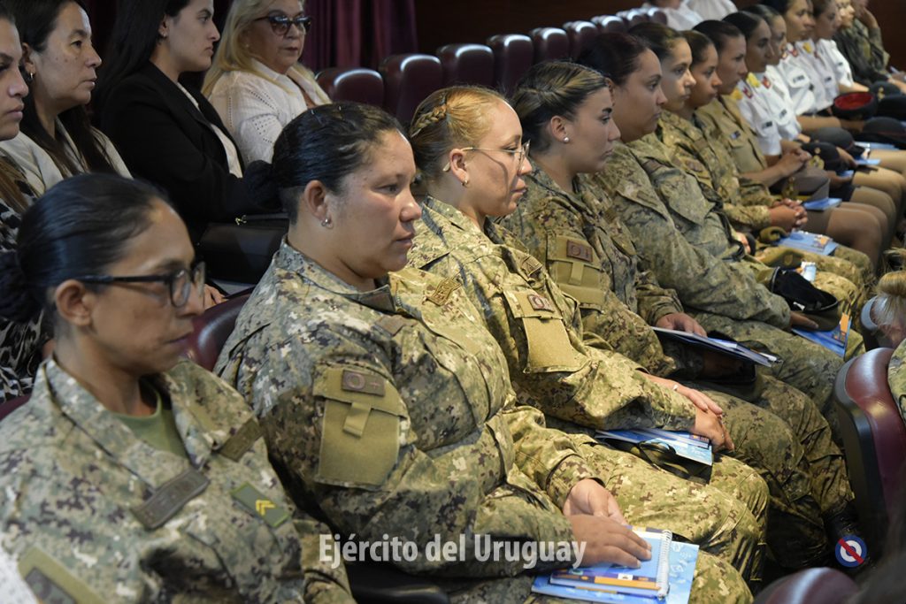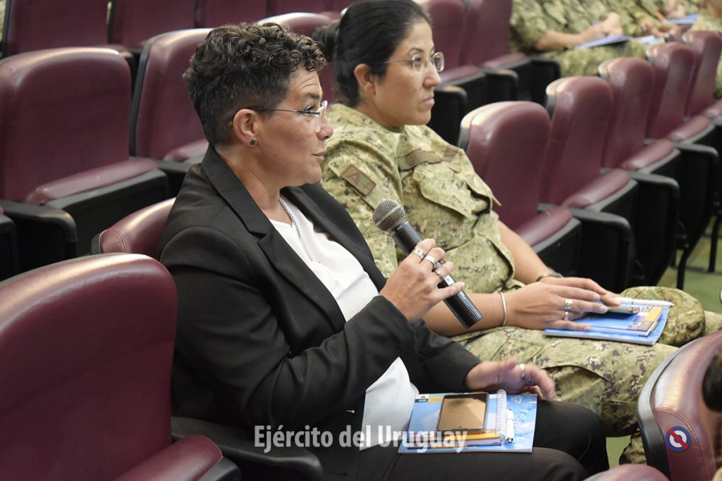 Las panelistas fueron la Tte. Cnel. Celeste Güell de la Dirección Nacional de Sanidad de las FFAA, la Suboficial Mayor Lorena Menyou de la Escuela Nacional de Operaciones de Paz del Uruguay y la Alférez de Navío Camila Villagrán de la Armada Nacional.
