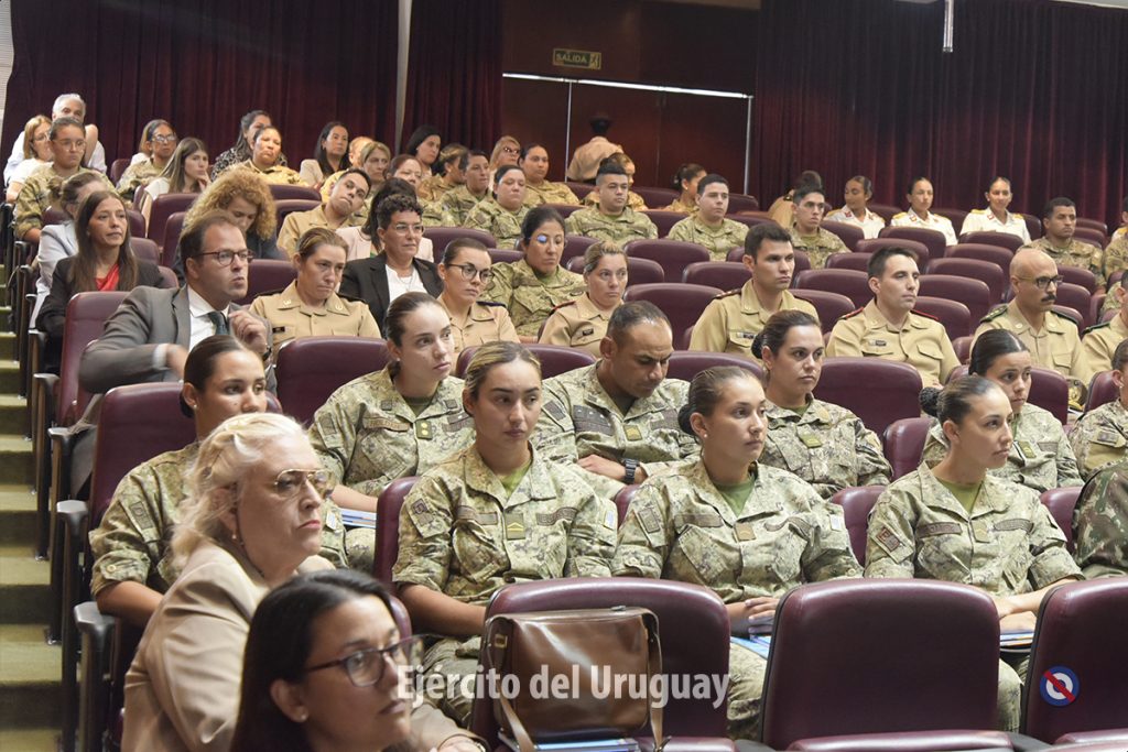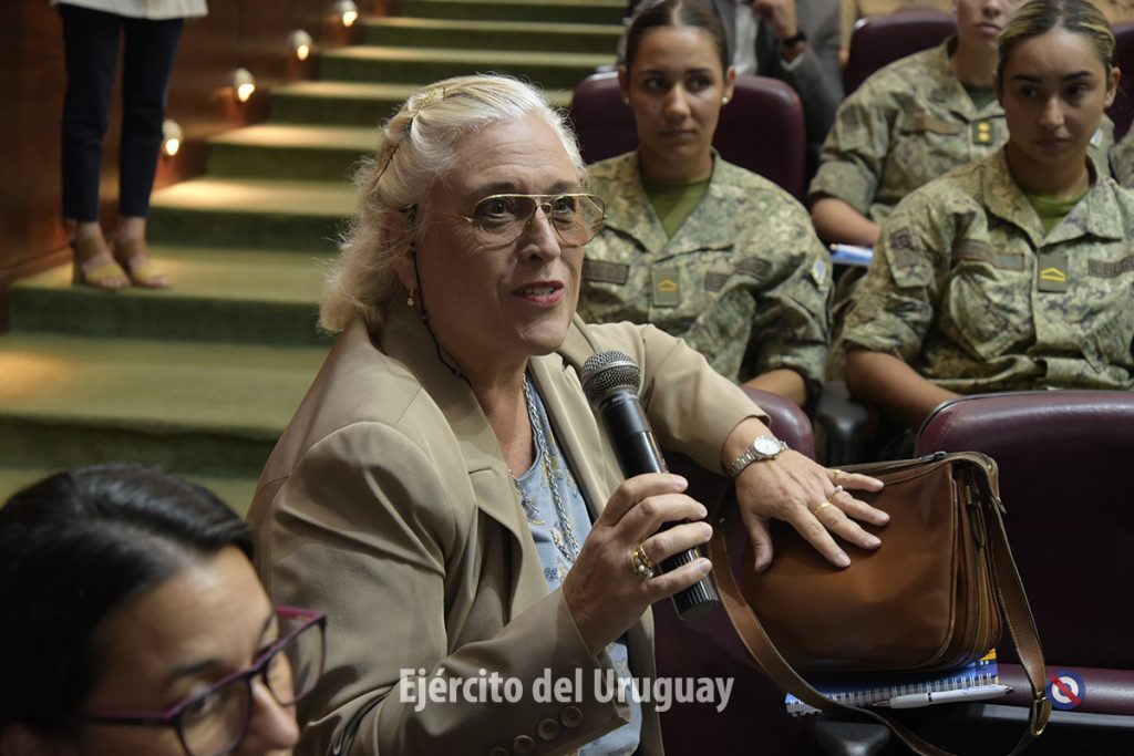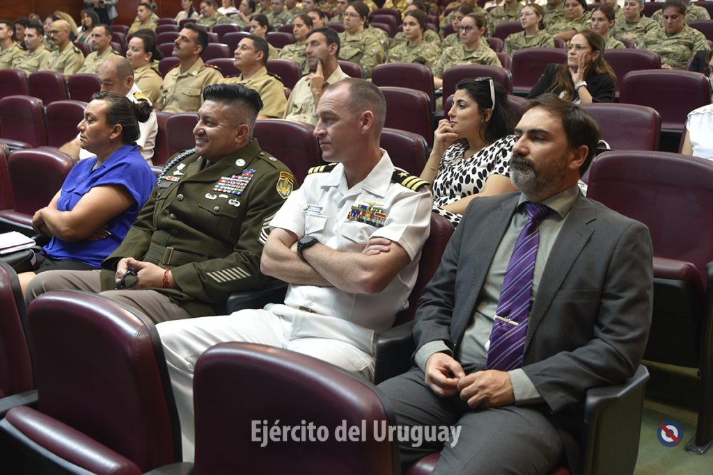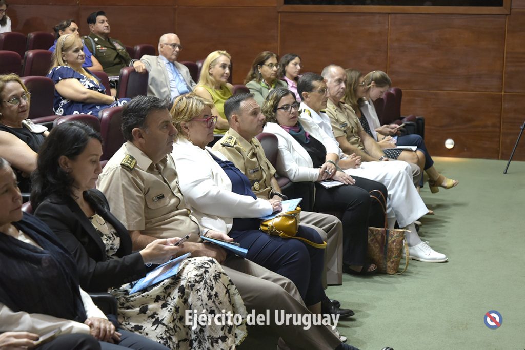 Asistieron al conversatorio autoridades del Ministerio de Defensa Nacional, del Sistema Nacional de Apoyo a las Operaciones de Mantenimiento de la Paz, de ONU Mujeres, de la Agencia Uruguaya de Cooperación Internacional, Oficiales Generales en actividad y retiro, militares extranjeros, efectivos del Ejército y de la Armada Nacional, Cadetes de la Escuela Militar, entre otros.