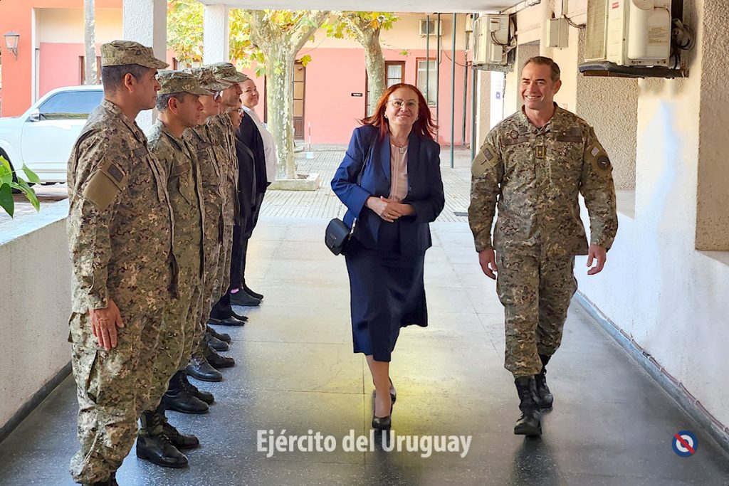 La diplomática fue recibida por el Director de la ENOPU, Cnel. Mathías Capó, quien tras darle la bienvenida, expuso las actividades académicas que realiza la Escuela, así como las estadísticas y experiencias de Uruguay en Misiones Operativas de Paz.