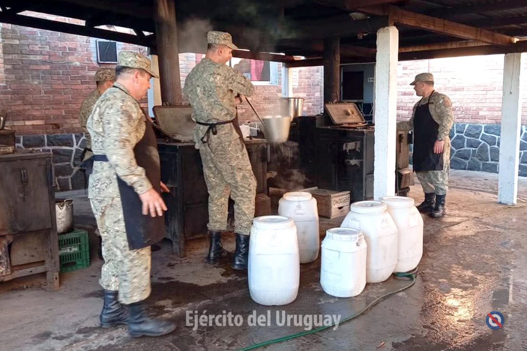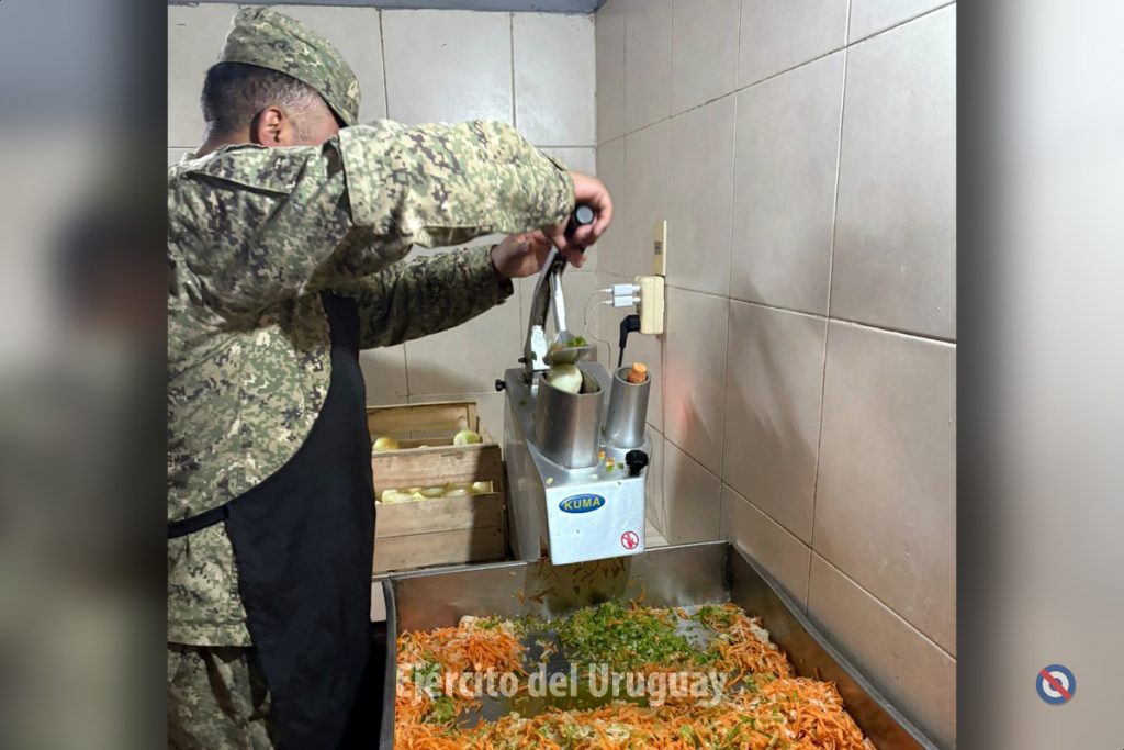 Desde el 21 de julio, el Regimiento «Patria» de Caballería Blindado N°8 está colaborando activamente con la Dirección de Gestión Social de la Intendencia de Cerro Largo en la confección de alimentos. Esta iniciativa, denominada Programa «Plato Caliente», permite la elaboración de 1.500 platos diarios para las familias más vulnerables de Melo y localidades cercanas como La Pedrera.