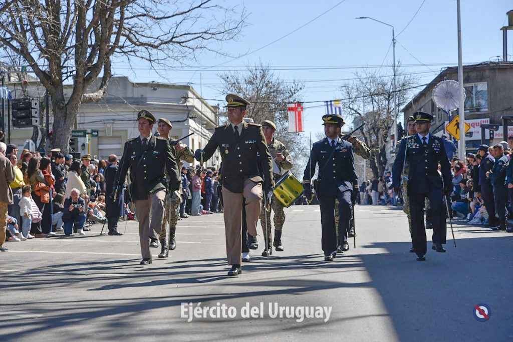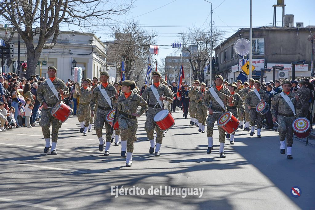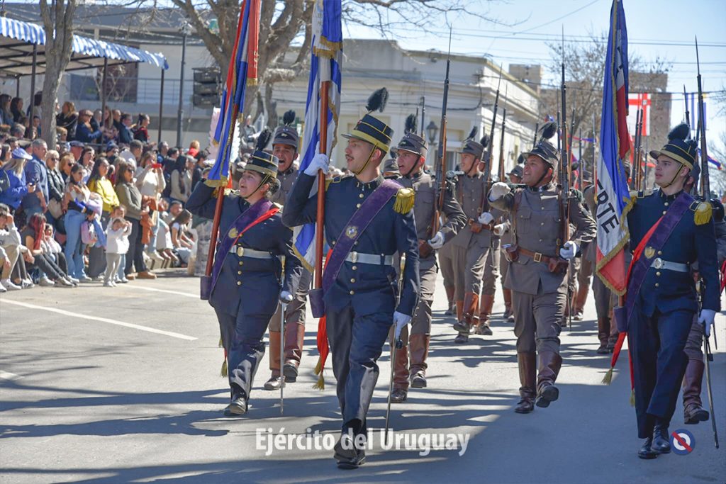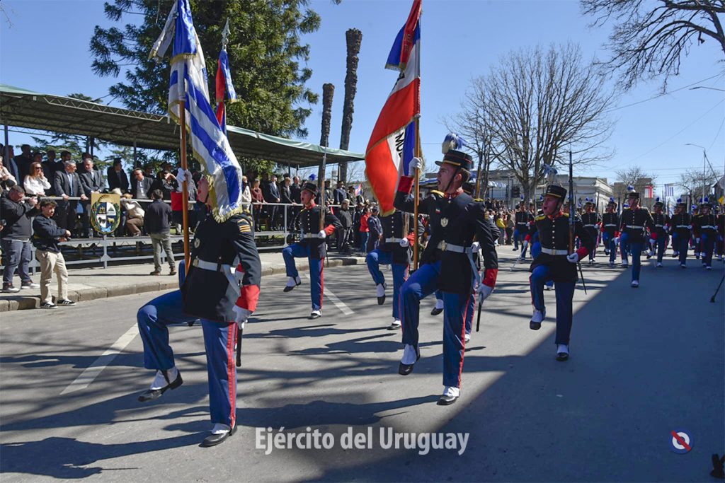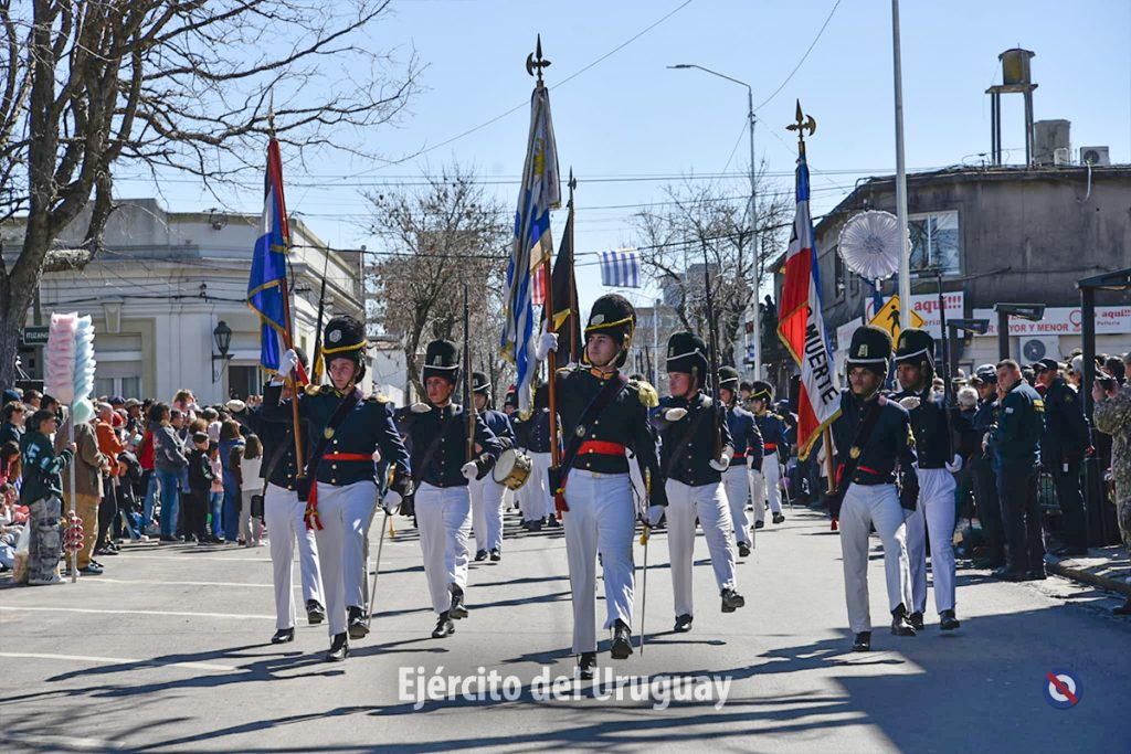 Posteriormente, se desarrolló el desfile cívico-militar por la calle Dr. Alejandro Gallinal, desde Lavalleja hasta General Flores. El Agrupamiento a Pie de la Fuerza estuvo integrado por la Banda Militar (BM) de la Brigada «Gral. Eugenio Garzón» de Infantería N°1; Compañía de Desfile con banderas, escolta y BM de la Escuela Militar; Liceo Militar «General Artigas»; BM del Instituto Militar de las Armas y Especialidades.