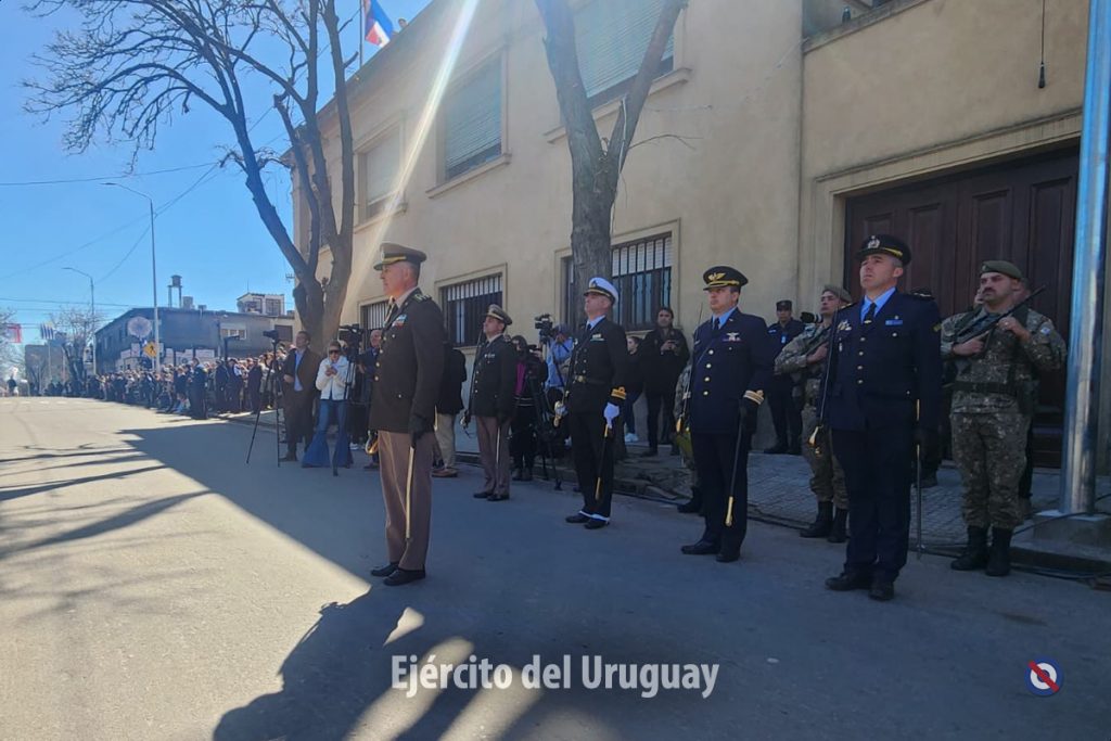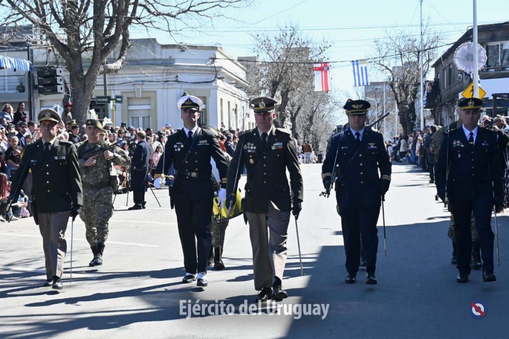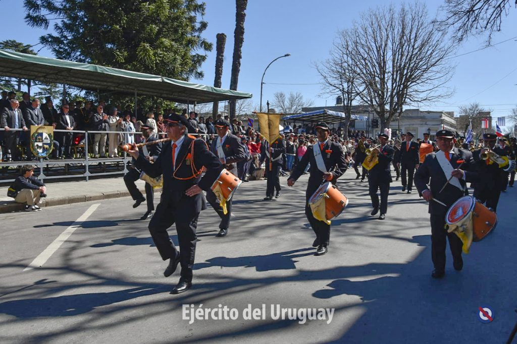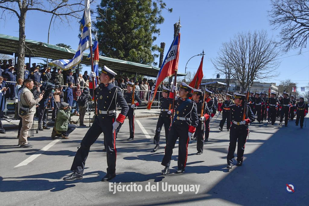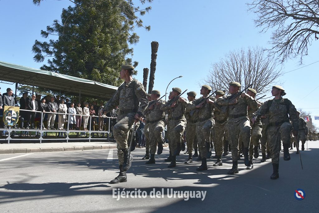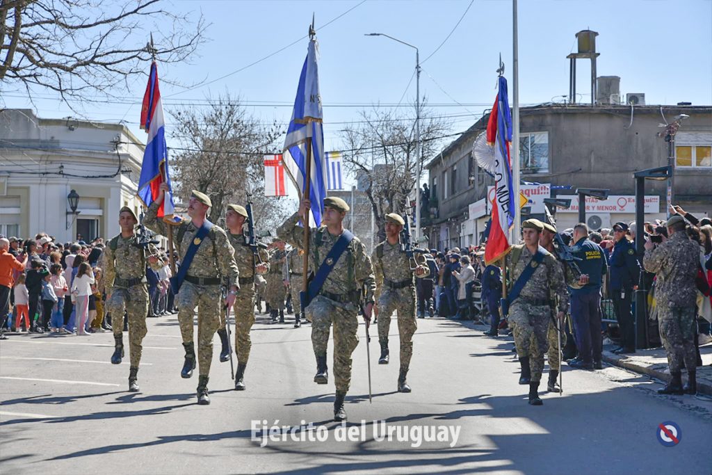 Posteriormente, se desarrolló el desfile cívico-militar por la calle Dr. Alejandro Gallinal, desde Lavalleja hasta General Flores. El Agrupamiento a Pie de la Fuerza estuvo integrado por la Banda Militar (BM) de la Brigada «Gral. Eugenio Garzón» de Infantería N°1; Compañía de Desfile con banderas, escolta y BM de la Escuela Militar; Liceo Militar «General Artigas»; BM del Instituto Militar de las Armas y Especialidades.