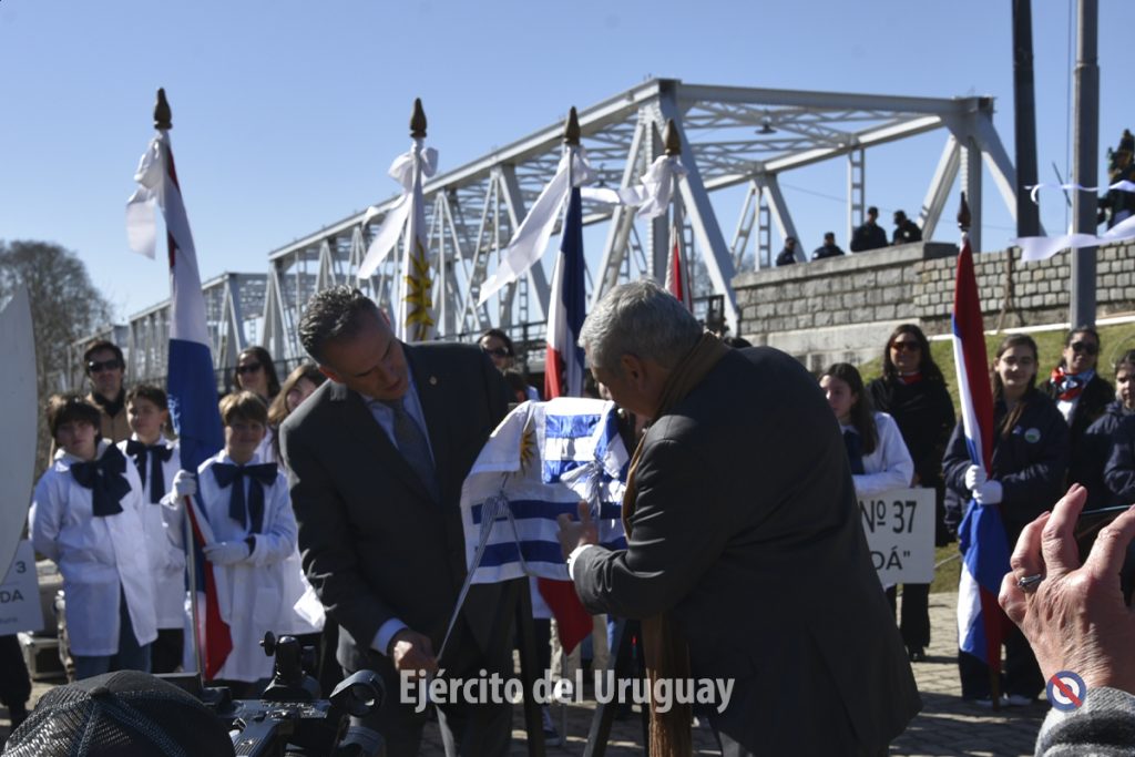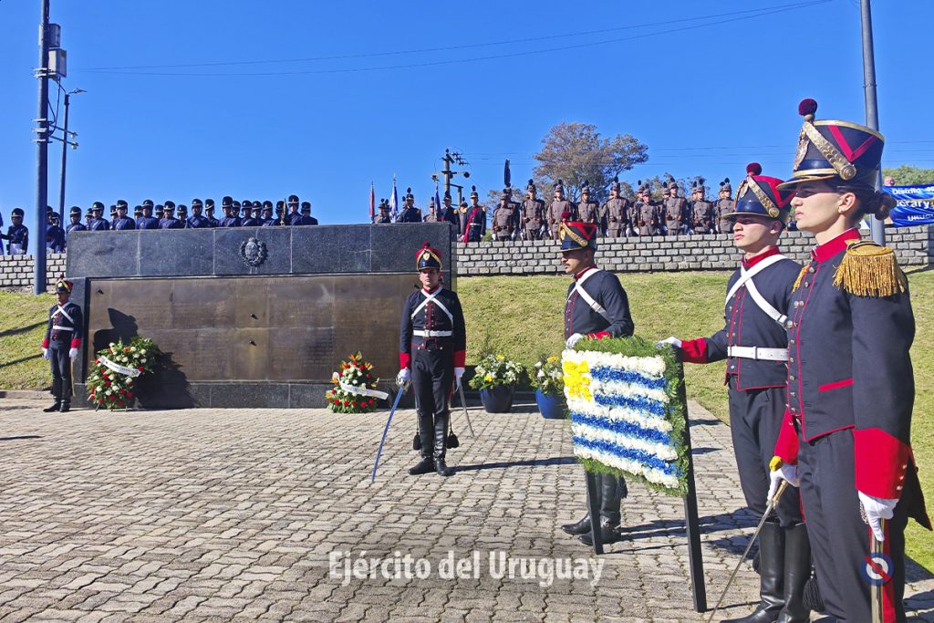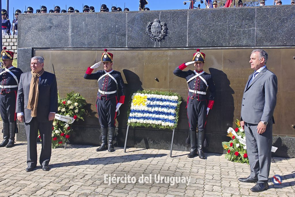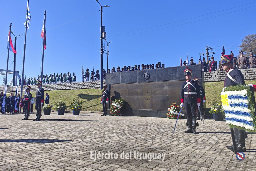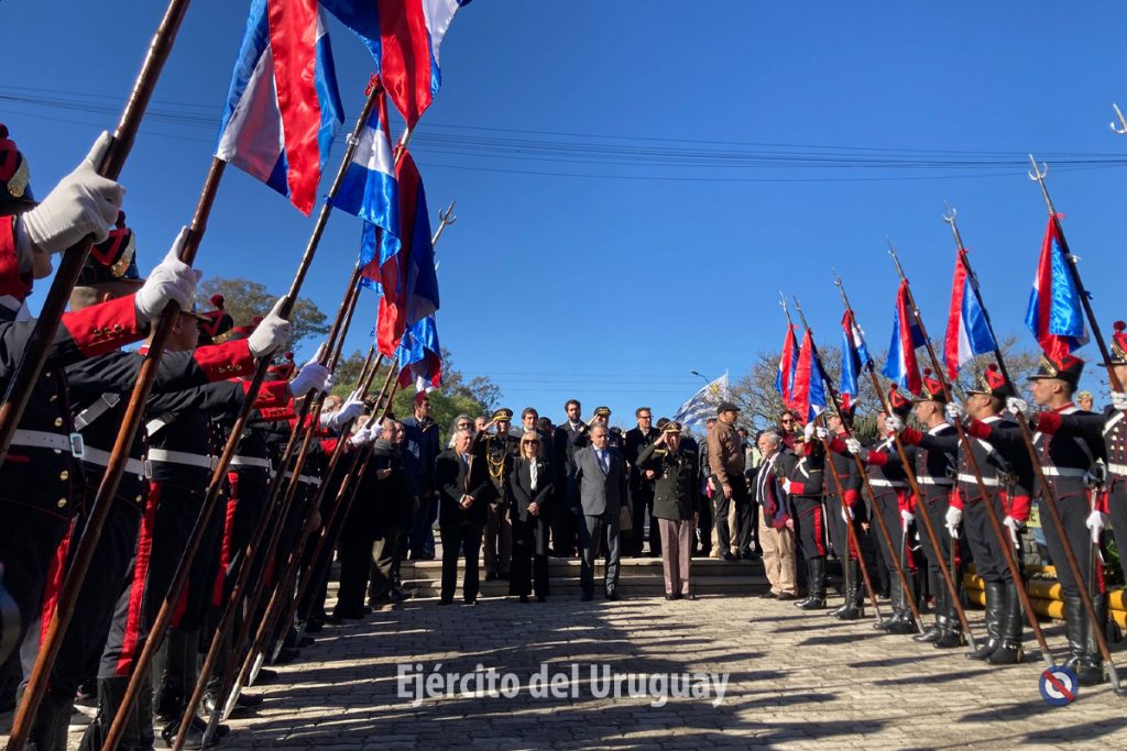 Una Sección de Honor y trompa del Regimiento «Blandengues de Artigas» de Caballería Nº1 participaron para recibir y despedir al Presidente de la República. Luego, dos efectivos de la Unidad realizaron la colocación de la ofrenda floral y el toque de silencio. Cabe destacar que la Banda de Músicos de la Escuela Militar ejecutó el Himno Nacional y se invitó a los presentes a entonar sus estrofas.