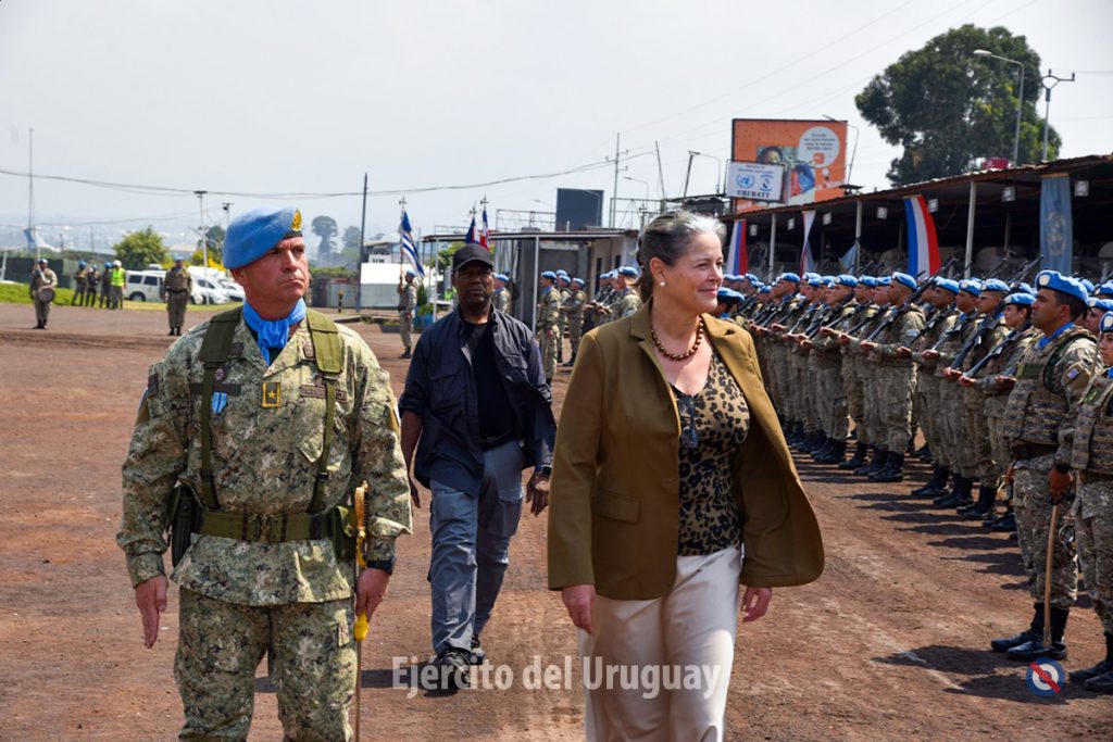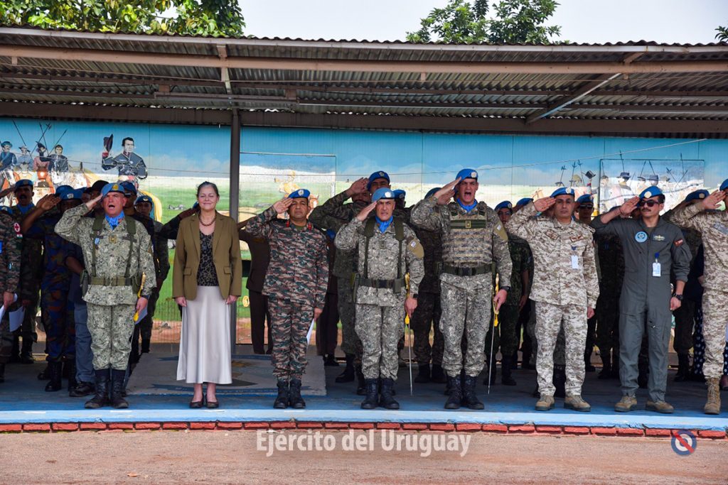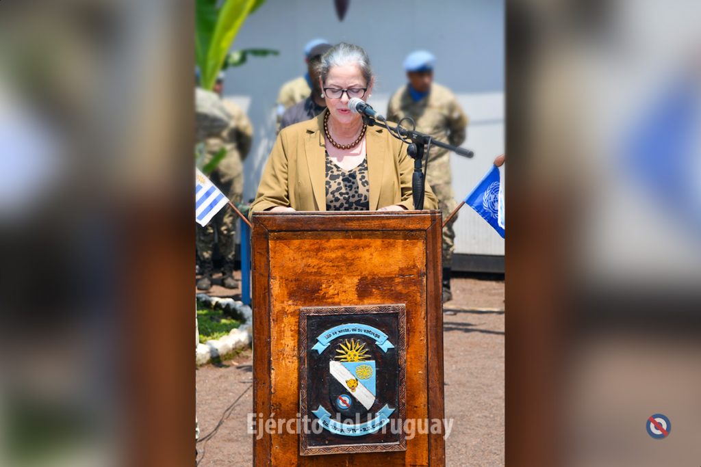 Asimismo se pronunciaron las palabras de la Representante Especial del Secretario General en la R.D.Congo y Jefa de la MONUSCO, Sra. Bintou Keita, quien expresó su profundo respeto y agradecimiento al Batallón «Uruguay IV». En su mensaje, destacó el profesionalismo, el coraje y la resiliencia del Contingente en un entorno de alto riesgo, subrayando su crucial papel en la protección de civiles y la estabilización de la paz en la República Democrática del Congo.