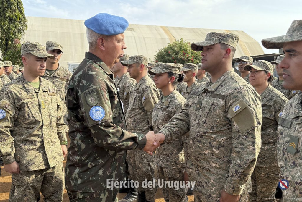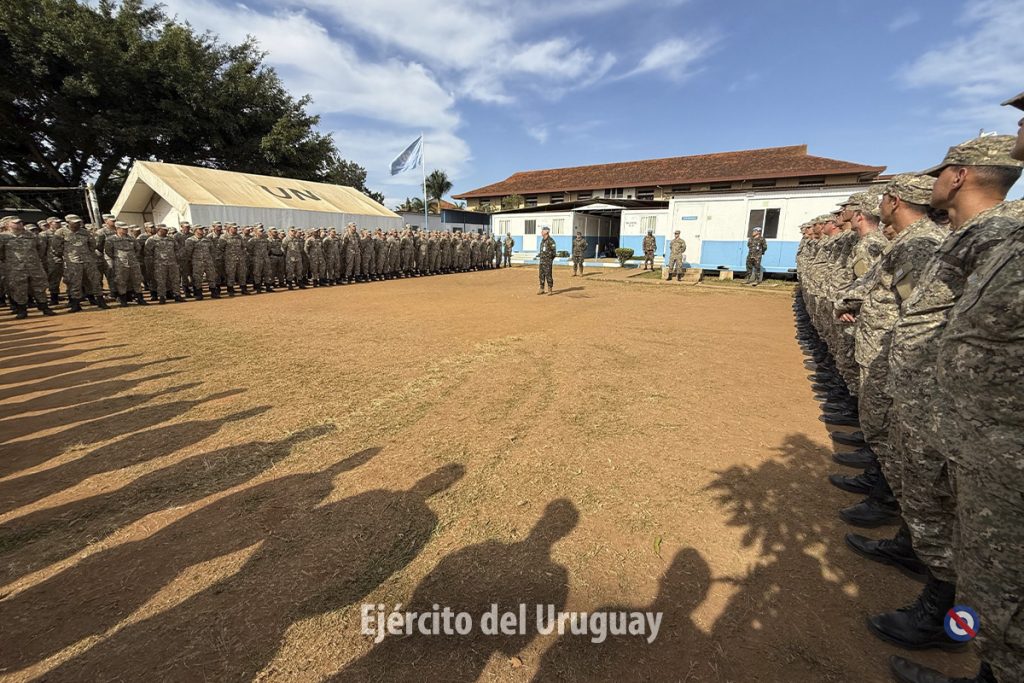 En su discurso, el Cte. de la Fuerza destacó la importancia y el valor del personal militar uruguayo en el área de misión, así como el profesionalismo, la disciplina y la dedicación que demuestran en cada tarea asignada.