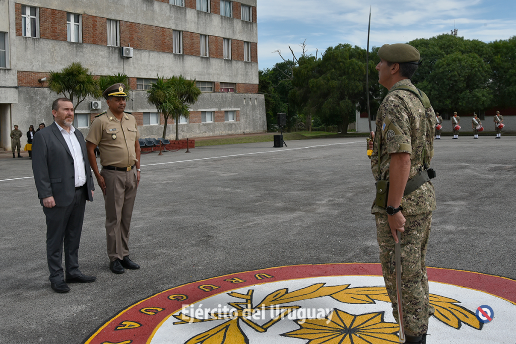 En primera instancia, el Subsecretario del Ministerio de Defensa Nacional, Joel Rodríguez, junto al Director General del IMAE, Cnel. Pablo Olivera, saludaron a los efectivos formados.