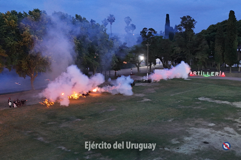 Para finalizar, la Batería de Artillería Ligera de 1830 del Grupo «Brig. Gral. Manuel Oribe» de Artillería 105 mm Nº 1 ejecutó tiros de salva de cañón y la Banda Militar de la AE, realizó evoluciones en conmemoración a su 50° aniversario.