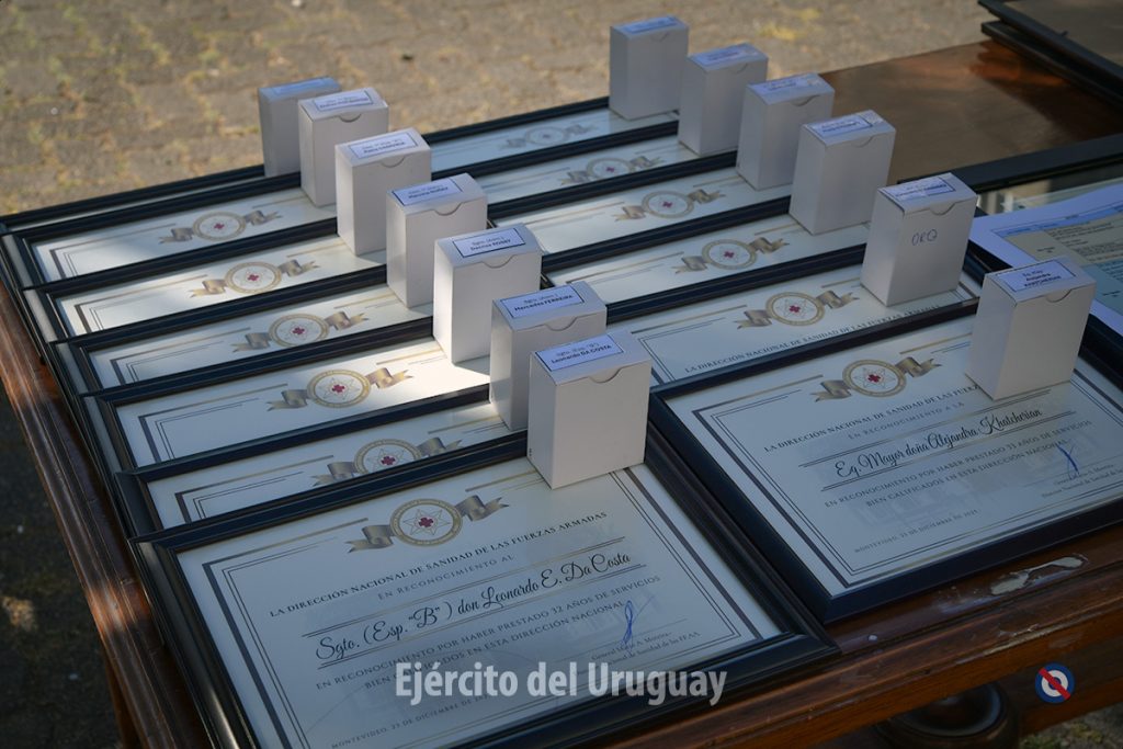 – distinciones a equipos y servicios de la Dirección Nacional de Sanidad y del Hospital Central de las FFAA por su destacada actuación en Operaciones en Misiones de Paz, atención de emergencias críticas, salud mental, traslados sanitarios y apoyo humanitario