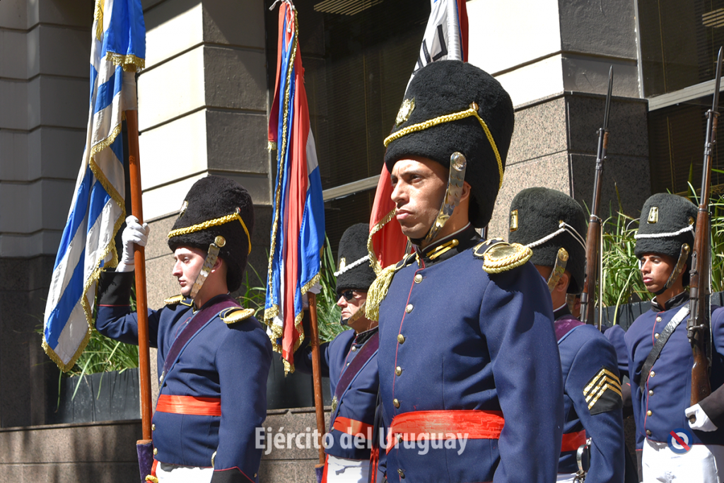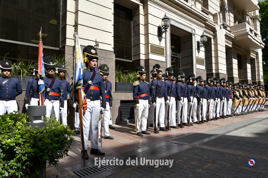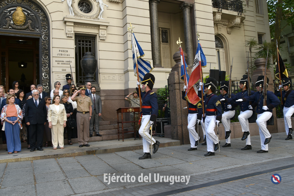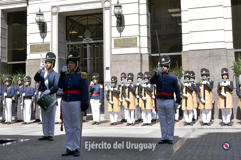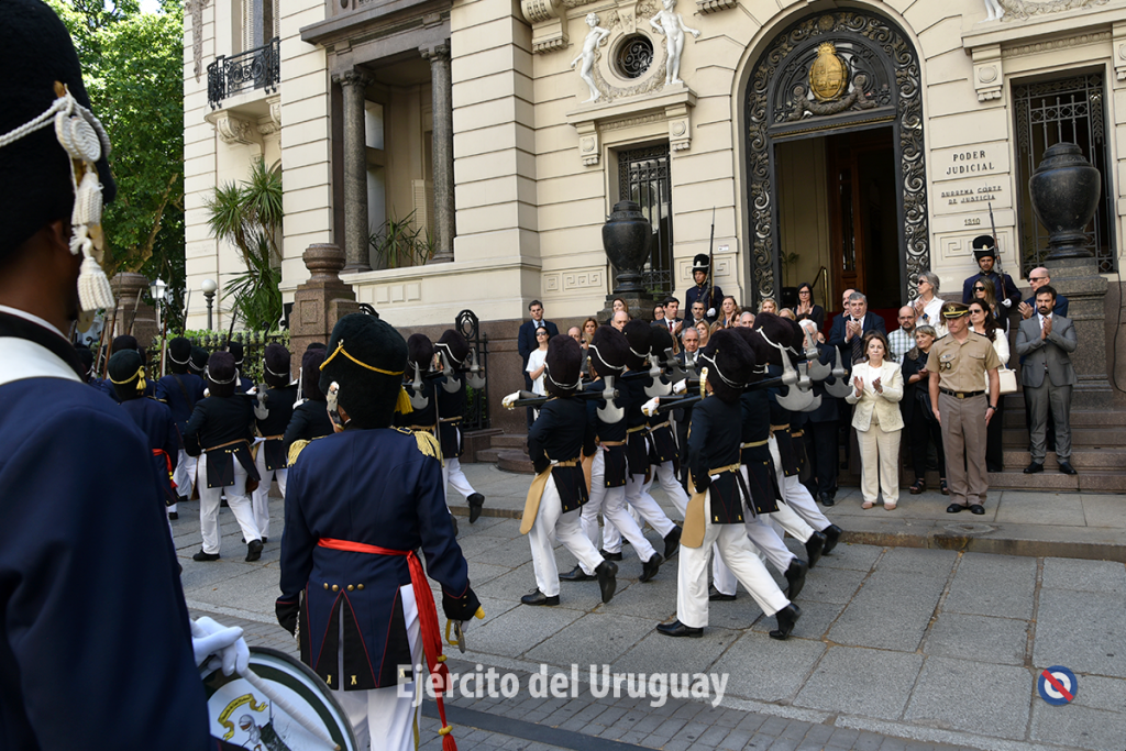 La Compañía desfiló rindiendo honores a las autoridades al son de la marcha «Mi Bandera», por el Pasaje de los Derechos Humanos, frente al Palacio Piria, sede del máximo órgano de justicia de nuestro país.