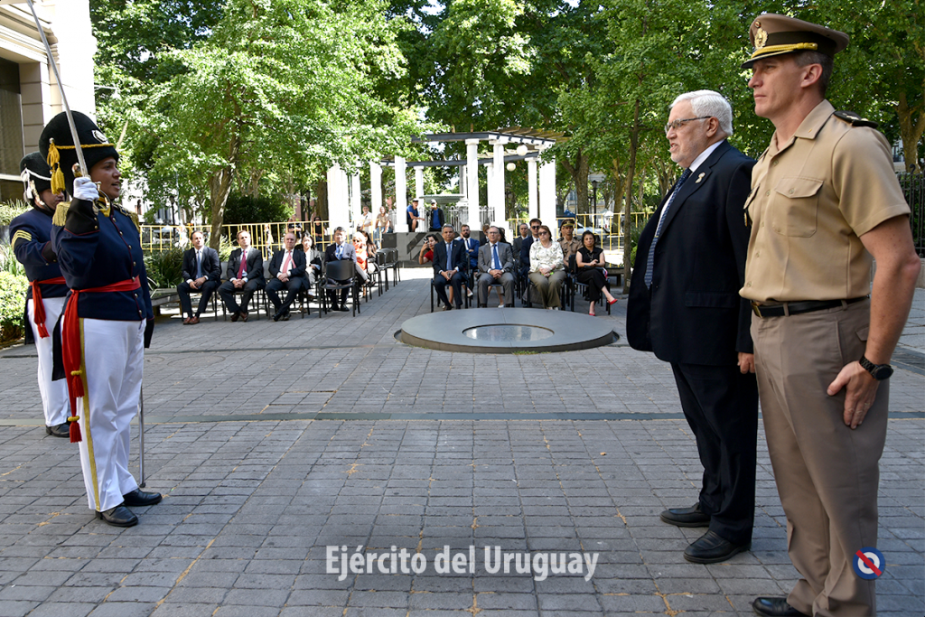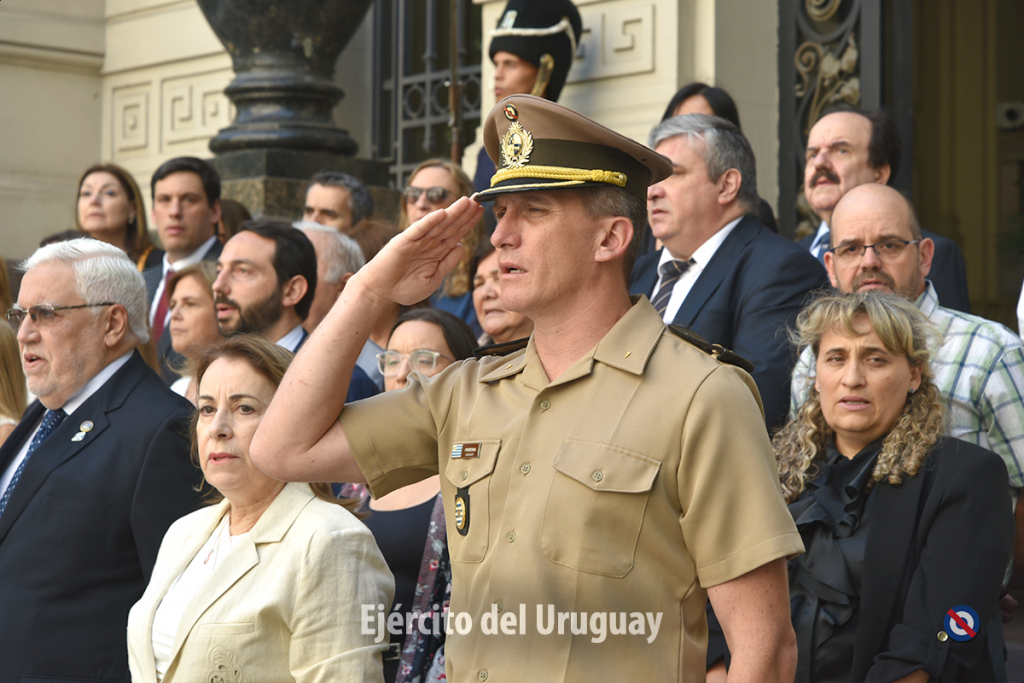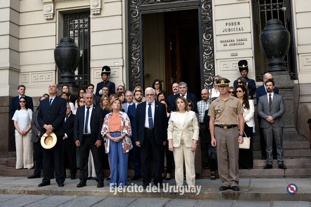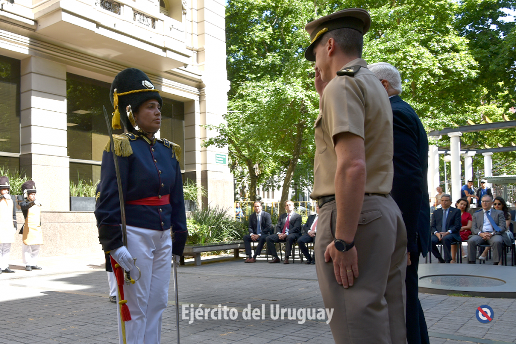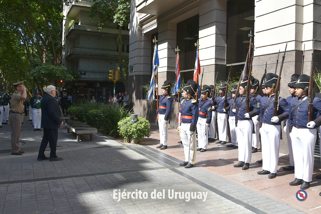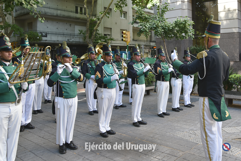 La Compañía desfiló rindiendo honores a las autoridades al son de la marcha «Mi Bandera», por el Pasaje de los Derechos Humanos, frente al Palacio Piria, sede del máximo órgano de justicia de nuestro país.