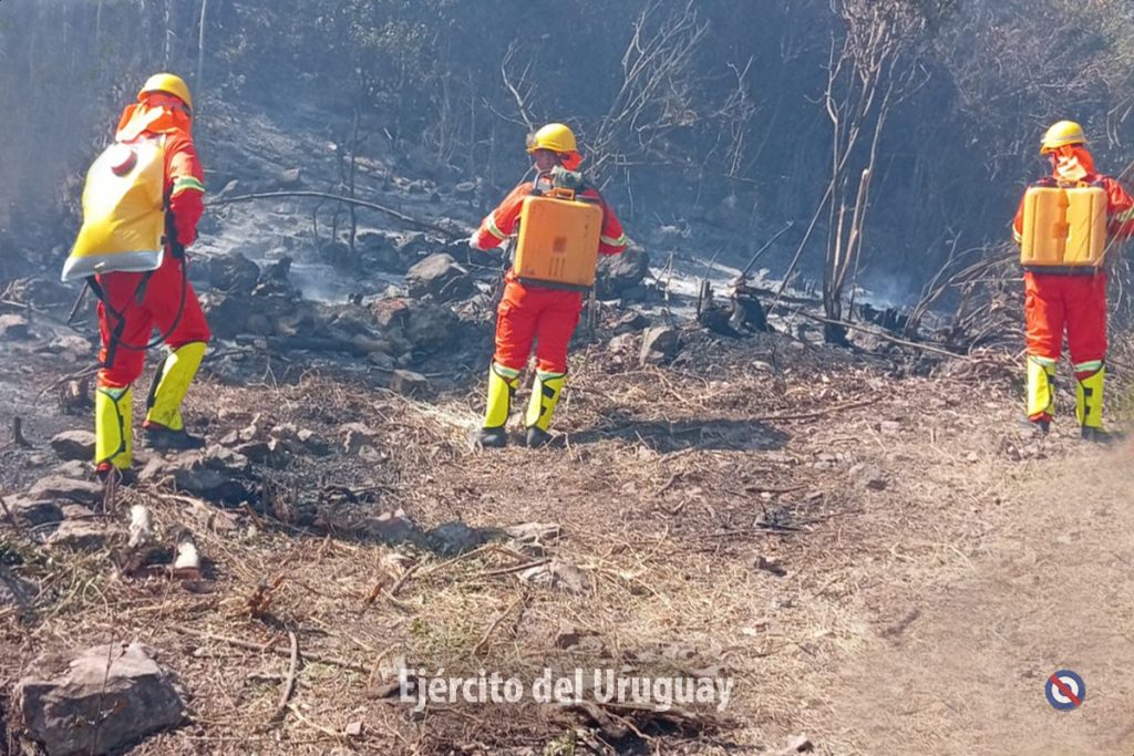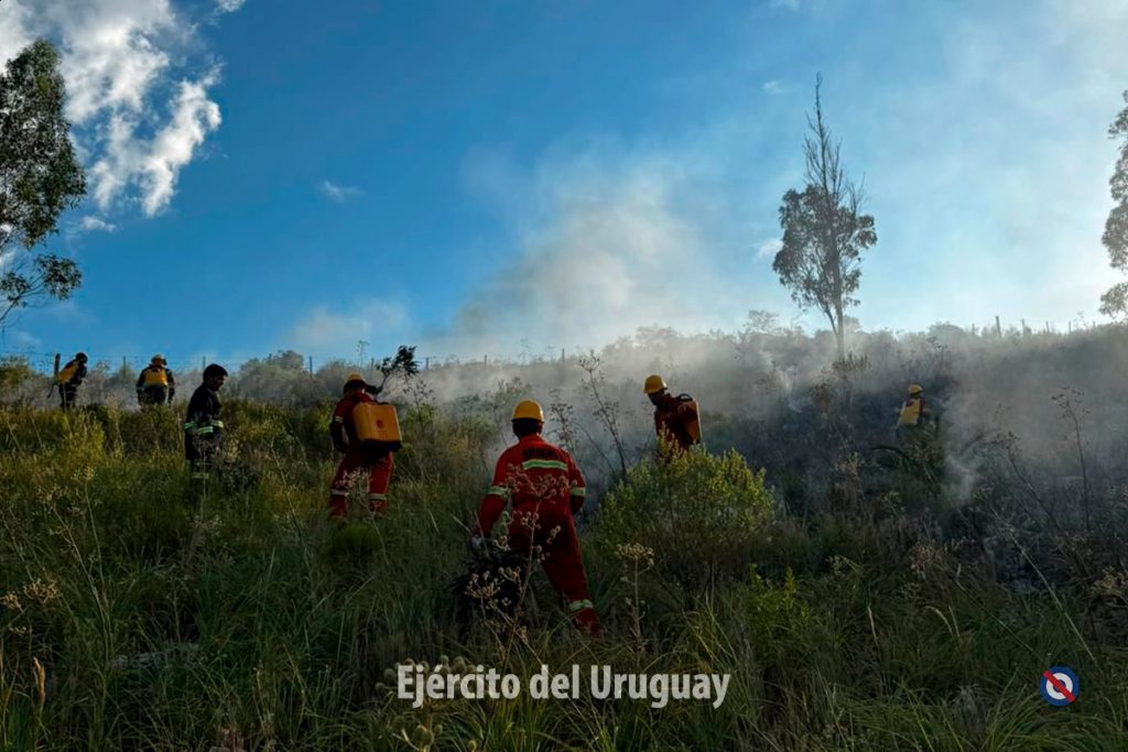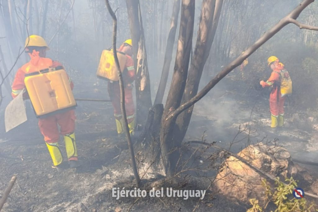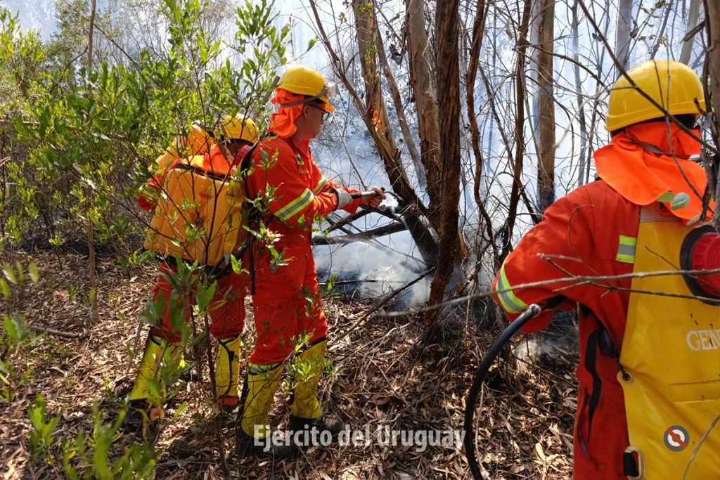 Actualmente, más de 60 efectivos del Batallón «Brig. Gral. Juan A. Lavalleja» de Infantería N°11 y y del Grupo «Cruzada Libertadora de 1825” de Artillería 105 mm N°4 trabajan para combatir el fuego, realizando tareas de enfriamiento.