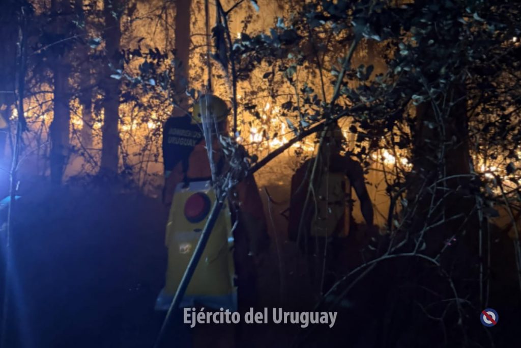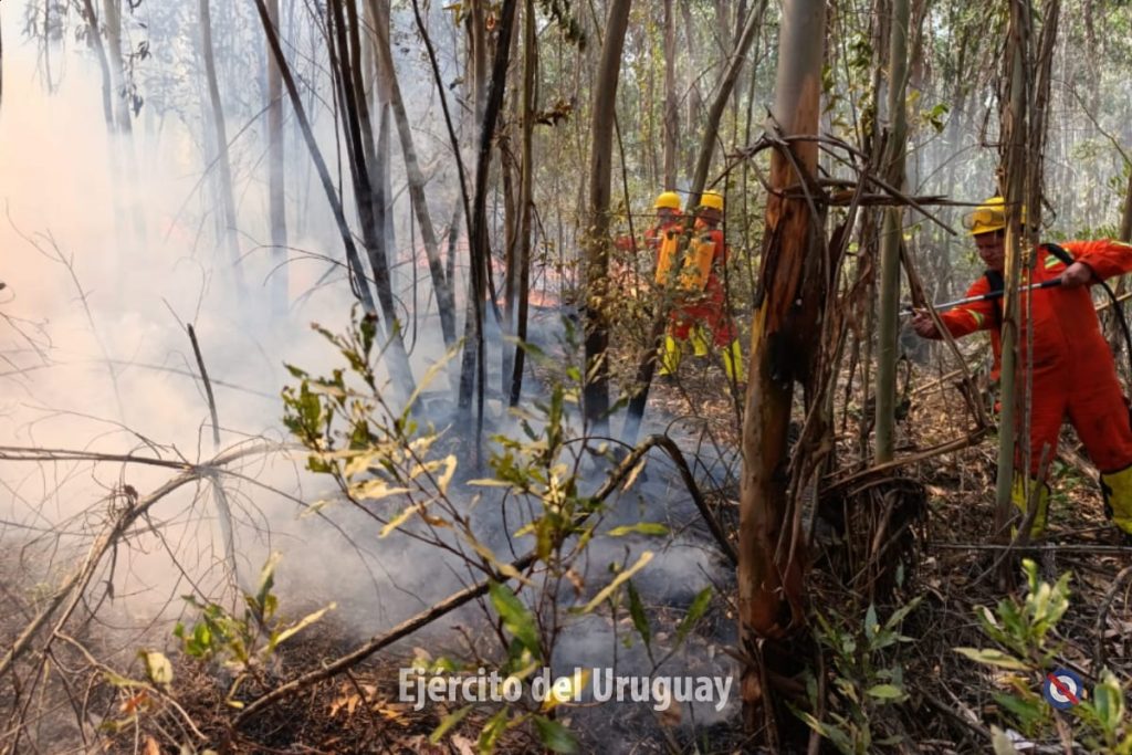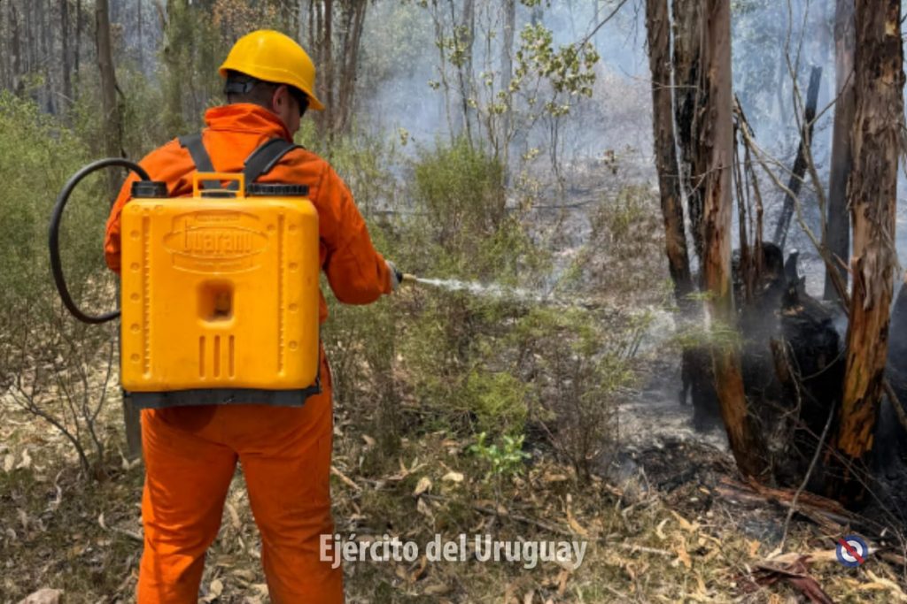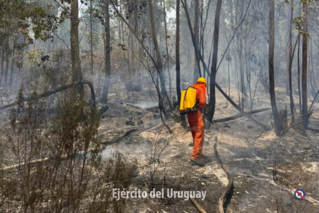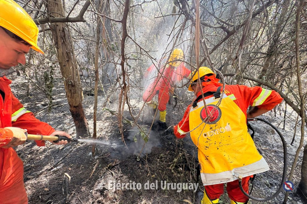 Actualmente, más de 60 efectivos del Batallón «Brig. Gral. Juan A. Lavalleja» de Infantería N°11 y y del Grupo «Cruzada Libertadora de 1825” de Artillería 105 mm N°4 trabajan para combatir el fuego, realizando tareas de enfriamiento.
