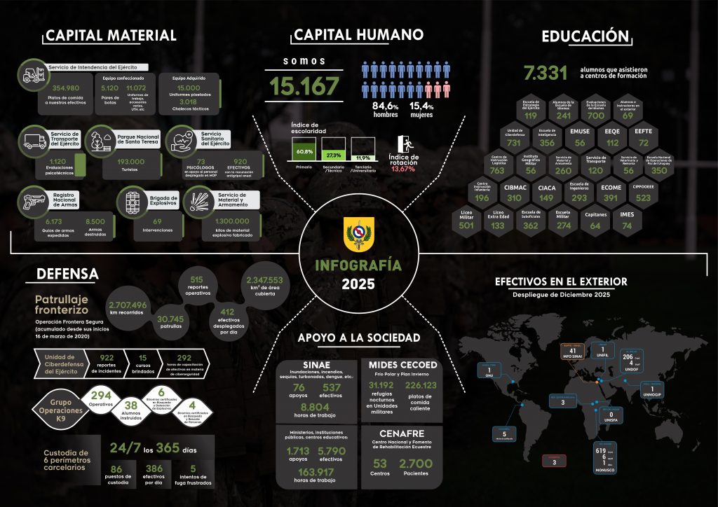 Compartimos la infografía 2025 del Ejército Nacional, que resume los principales indicadores de desempeño en diferentes áreas.