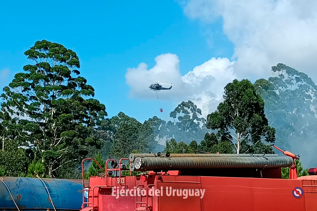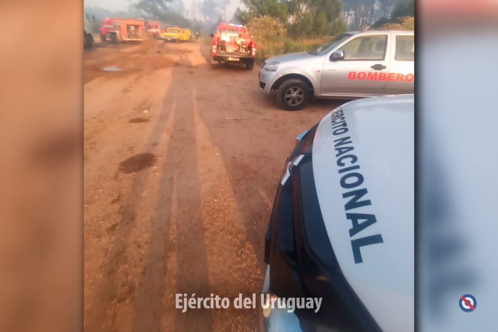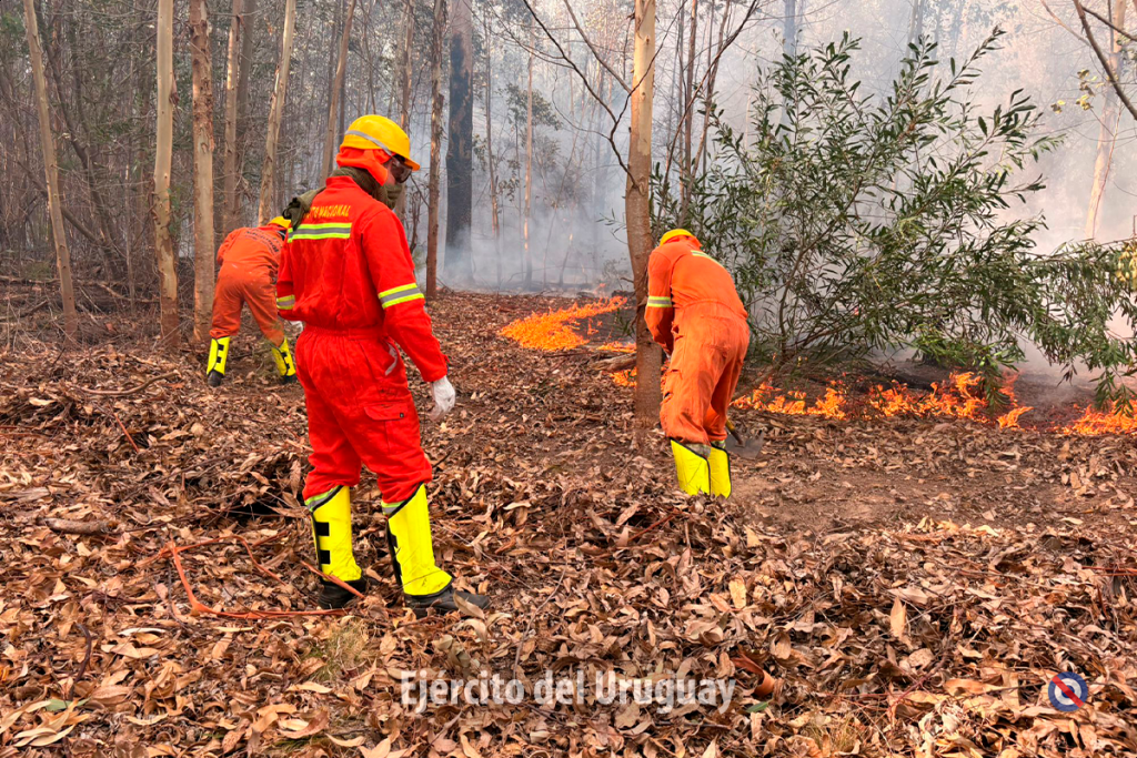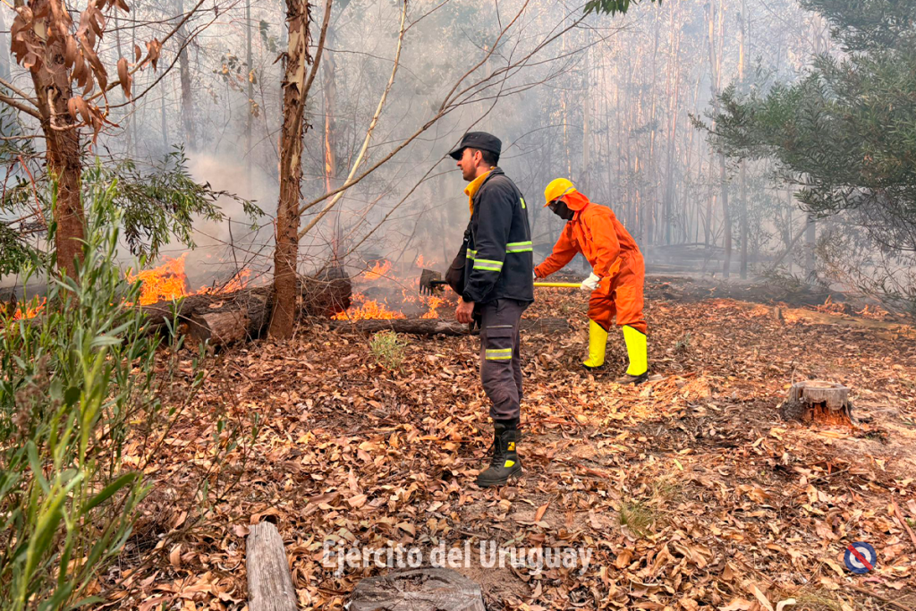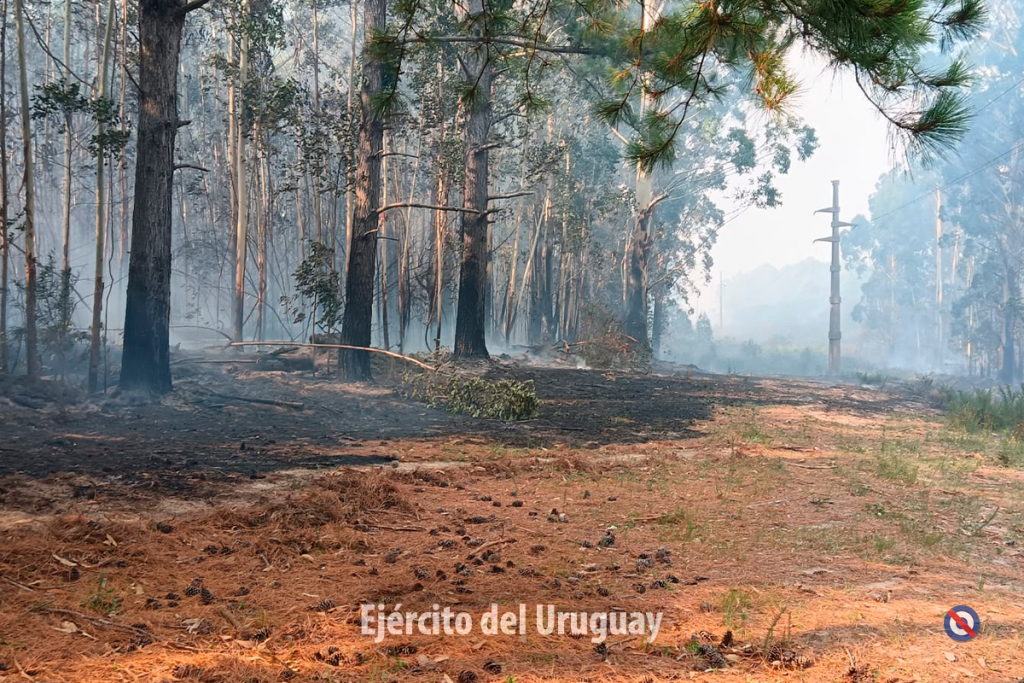 Aproximadamente 30 efectivos trabajan en apoyo a Bomberos para extinguir el incendio forestal que se propagó en el Balneario La Esmeralda, en el departamento de Rocha.