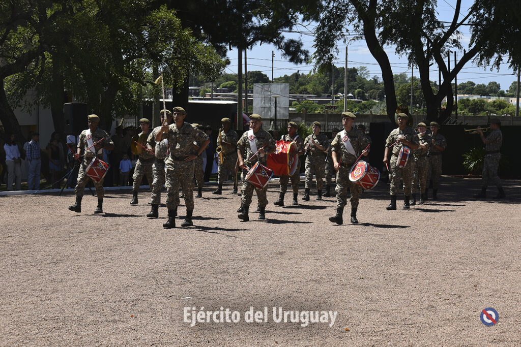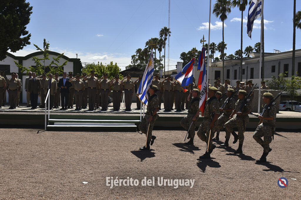 Finalizando, la Fuerza de Parada desfiló rindiendo honores a las autoridades presentes, al son de la marcha «Ejército Nacional», ejecutada por la Banda Militar de la Artillería de Ejército.