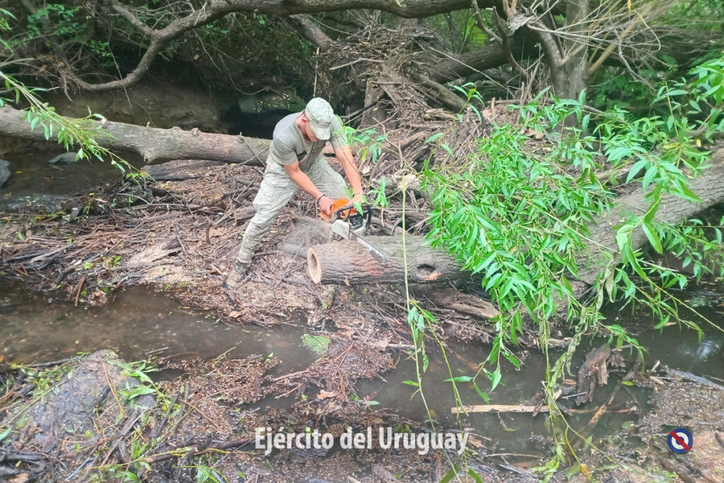 Por otra parte, el 19 de febrero se incrementó el apoyo con 2 equipos de 6 efectivos cada uno, pertenecientes al Batallón «Brig. Gral. Juan Antonio Lavalleja» de Infantería N°11 y al Grupo «Cruzada Libertadora de 1825» de Artillería 105 mm N°4. El personal trabaja 9 horas de lunes a viernes, realizando la limpieza, desmalezado y liberación de cursos de agua en cercanías del Balneario «Parque Minas».