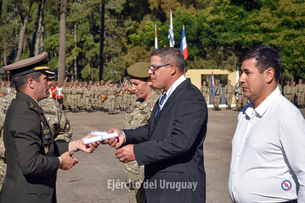 En primera instancia, el Cte. de la Reserva General del Ejército, Gral. Jorge Porciúncula acompañado del Cte. de la Brigada de Ingenieros N°1 (B.Ing.N°1), Cnel. Yamandú Cuello, pasaron revista de los efectivos formados.