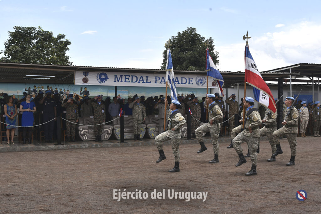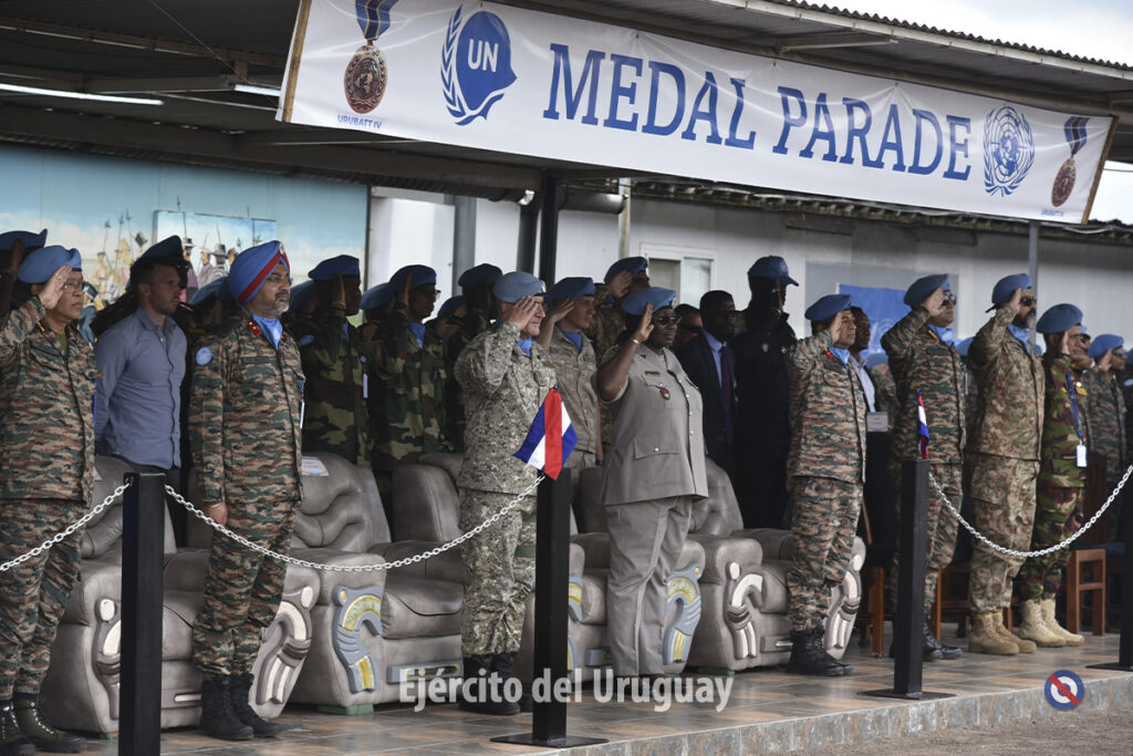 En esta instancia, 615 efectivos recibieron la medalla de las Naciones Unidas, lo que adquiere un significado especial al conmemorarse los 25 años de presencia ininterrumpida de los Cascos Azules uruguayos en la República Democrática del Congo. Este hito pone de manifiesto la sólida trayectoria, el firme compromiso y el alto nivel de profesionalismo de Uruguay en las operaciones de mantenimiento de la paz.