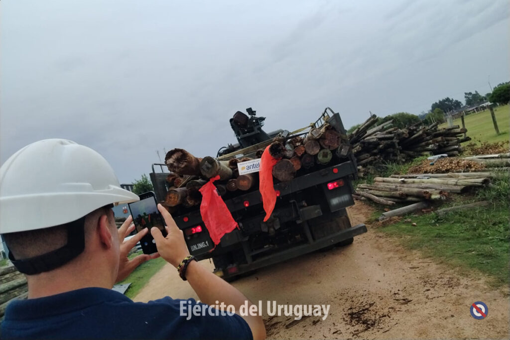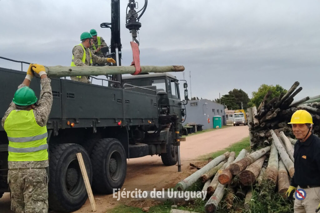 El Departamento V (Asuntos Civiles y Bienestar Social) del Estado Mayor del Ejército, apoyó a la Casa de la Cultura Espacio Cubierto en la coordinación del traslado de postes de madera donados por Antel.