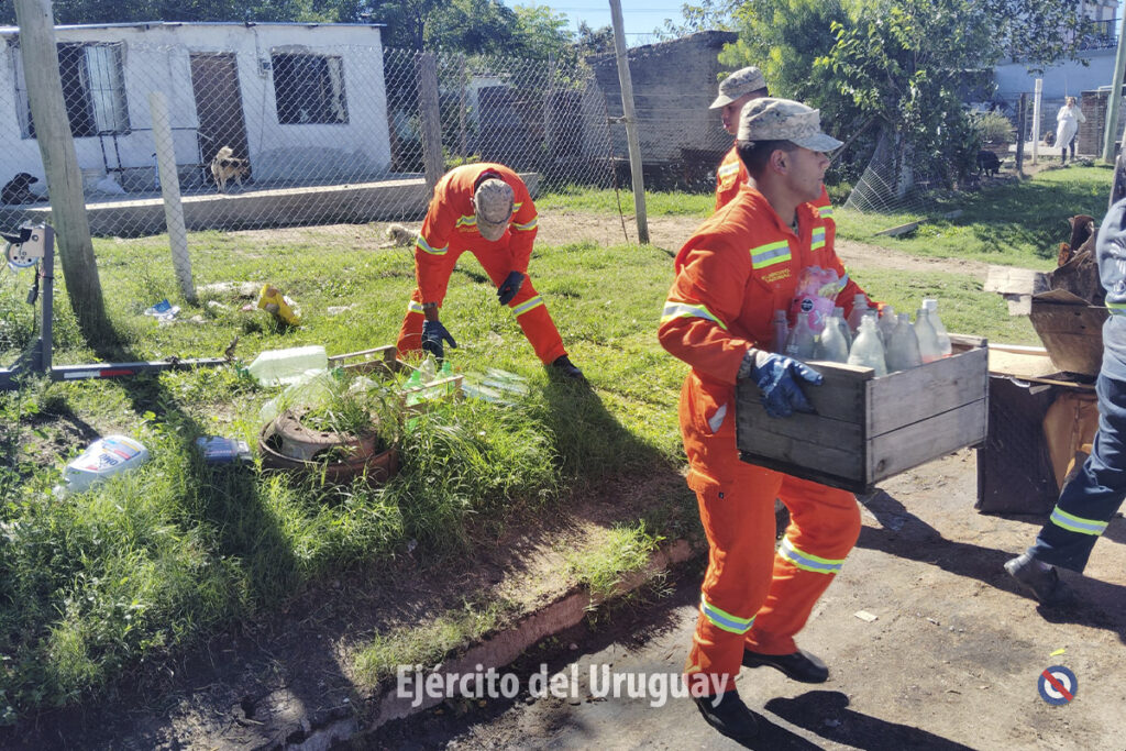 Por su parte, el Batallón de Infantería Mecanizado Nº15 colaboró en el Plan Departamental de Descacharrización para combatir al Aedes aegypti, mosquito transmisor del dengue, chikungunya y zika. El personal, en conjunto con el Centro Coordinador de Emergencias Departamental y la Dirección General de Salud y Gestión Ambiental de la Intendencia de Florida, recorrió diariamente los barrios de la ciudad de Florida, facilitando el retiro de recipientes, neumáticos y otros objetos en desuso que pueden funcionar como potenciales criaderos de estos insectos.