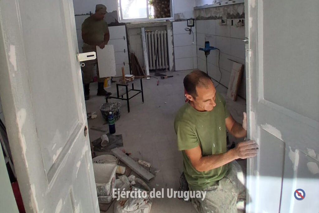 Efectivos del Comando General del Ejército brindaron apoyo en el Hospital Español «Dr. Juan José Crottogini», donde realizaron tareas de mantenimiento en distintas salas de internación, con el objetivo de optimizar las condiciones de estos espacios para pacientes y personal de salud.