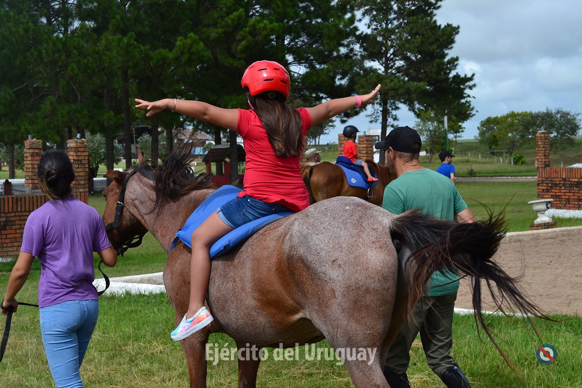20.06.2021 – Río Branco, Cerro Largo La pasada semana, con la presencia de personal idóneo, 18 niños retornaron a sus clases presenciales de equinoterapia en el Centro de Equitación y Rehabilitación Ecuestre Nº 7, ubicado en la sede del Regimiento “Gral. Aparicio Saravia” de Caballería Mecanizado Nº 7, bajo el protocolo sanitario dispuesto por el … Clases presenciales de equinoterapia