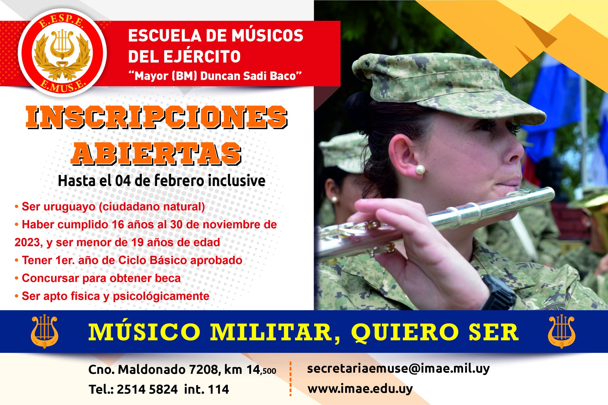 2.12.2021 – Hasta el 31 de diciembre, se encuentran abiertas las inscripciones para las pruebas de ingreso 2022 de la Escuela de Músicos del Ejército, ¡anotate!